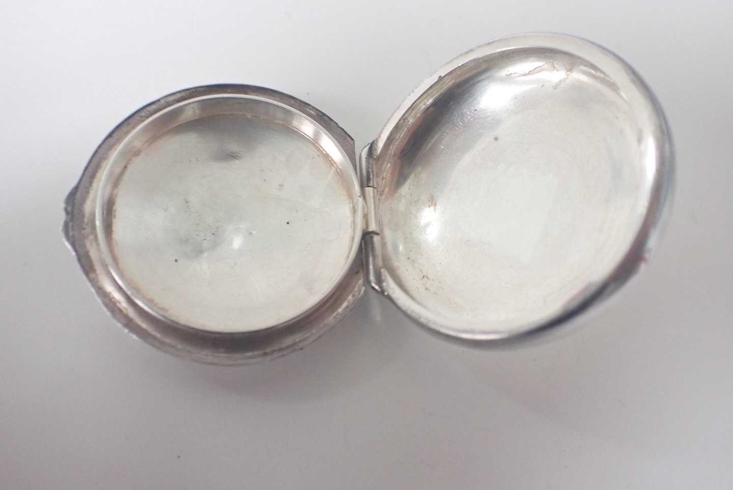 Æske til højre: Bernhard Hertz, Kbh. (1893 - 1937) - rektangulær hammerslået pilleæske med lille kantdekoration. Stemplet BH, Tretårne 1927 og Guardian C.F. Heise (1904 - 1932). Vægt: 16,2 gram. Mål: 1,2 x 3,1 x 4,2 cm. I pæn stand i forhold til alder. Pris: 425 klr.