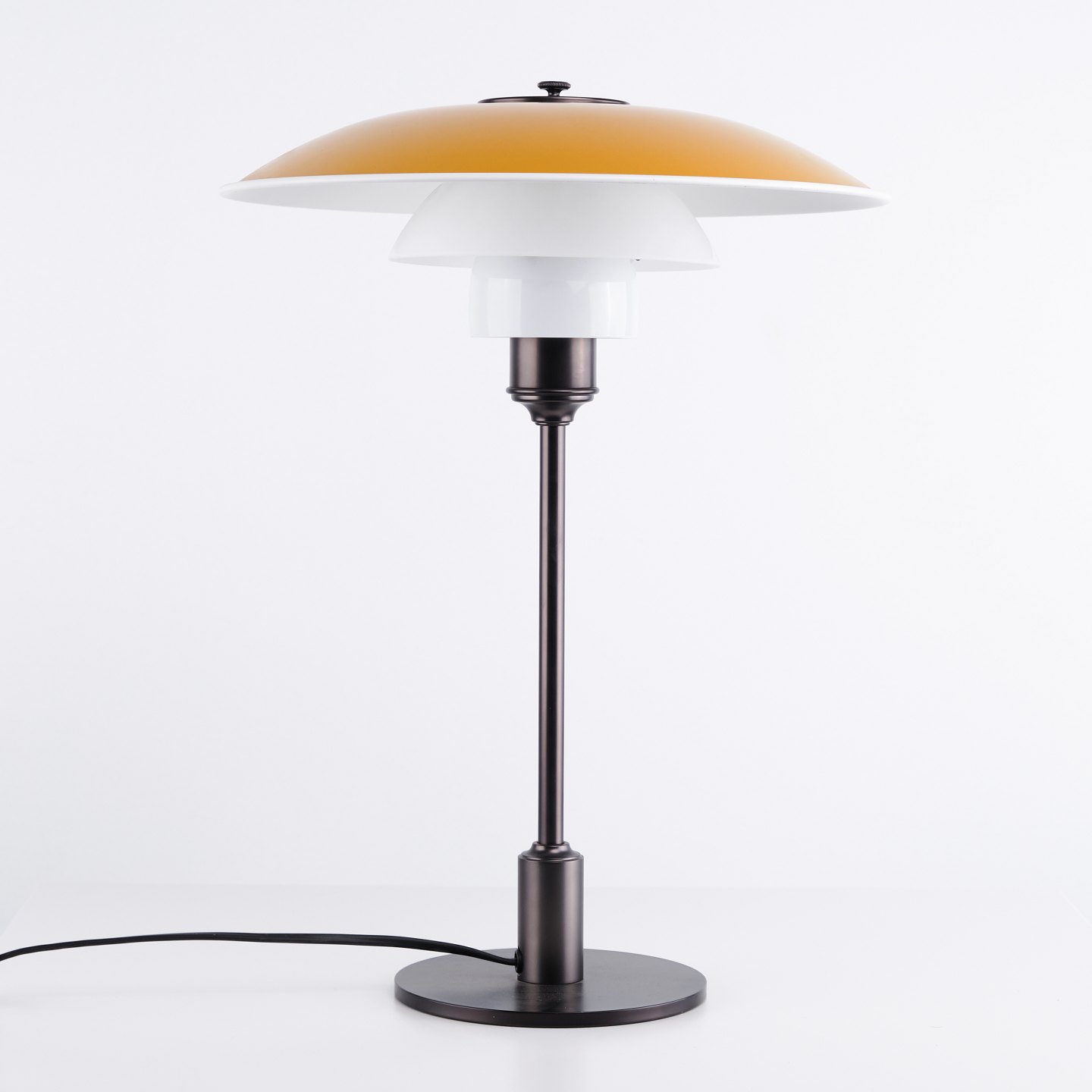 Poul Henningsen Bordlampe Model PH 3½-2½ i Gul Metal med Stel i Bruneret Messing, Louis Poulsen