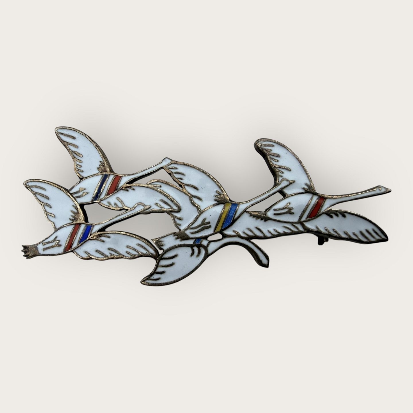 Erik Magnussen, Brosche aus Sterlingsilber, Die fünf Schwäne der nordischen Länder (Symbol für die fünf nordischen Länder), Maße ca. 6 x 2,5 cm * guter Zustand *