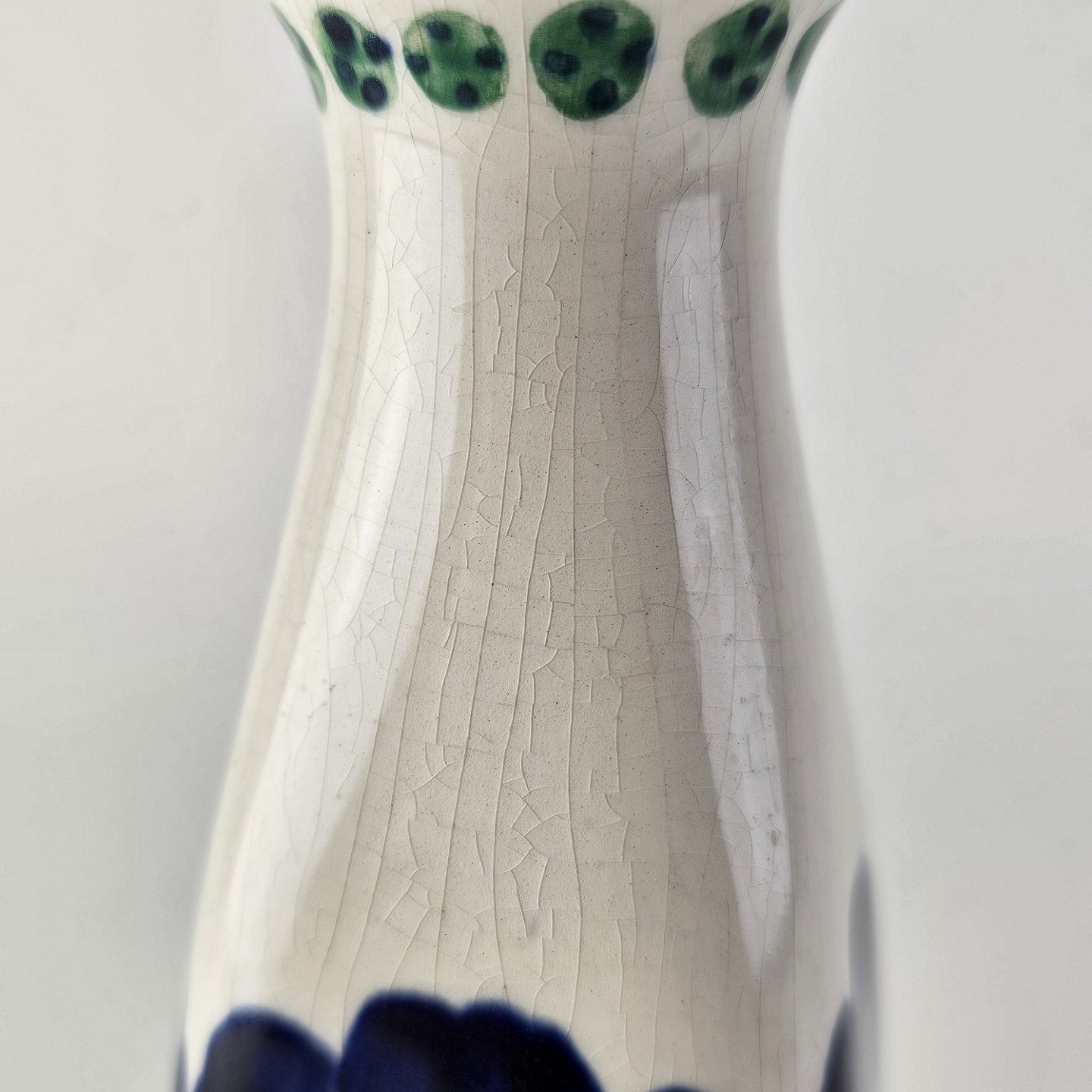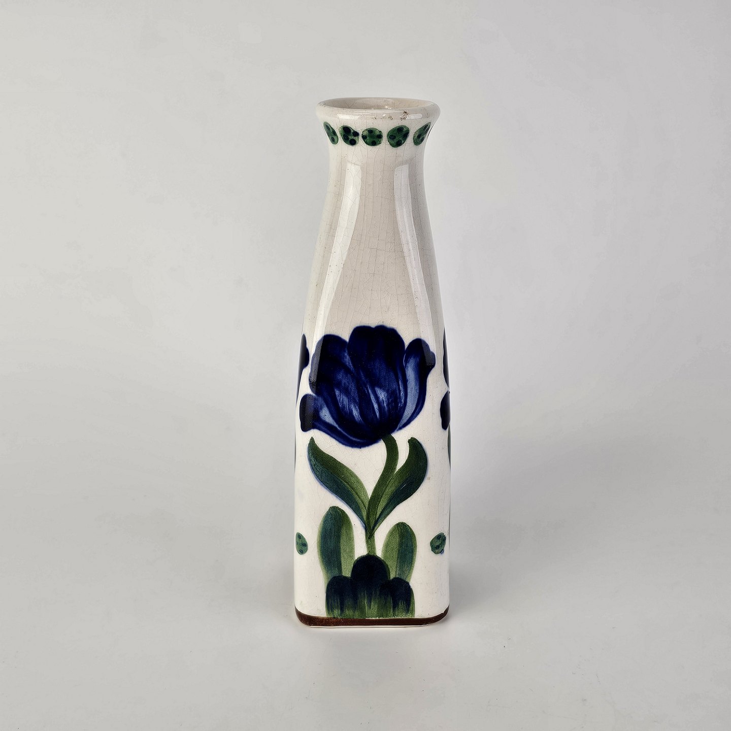 Vase i hvid fajance dekoreret med håndmalede blå violer