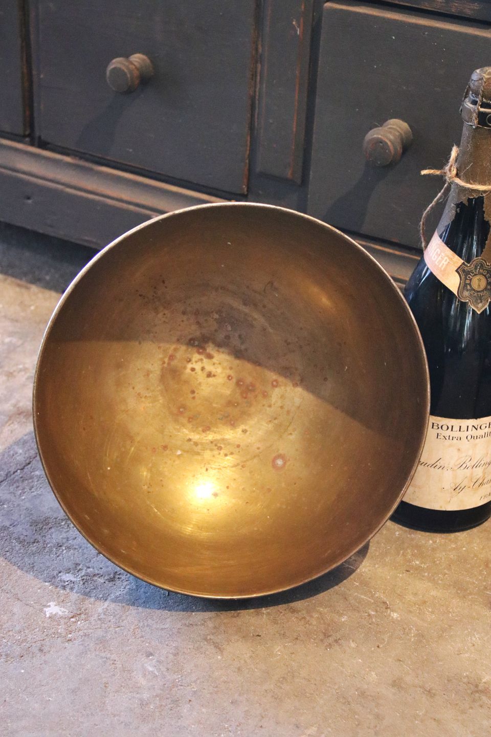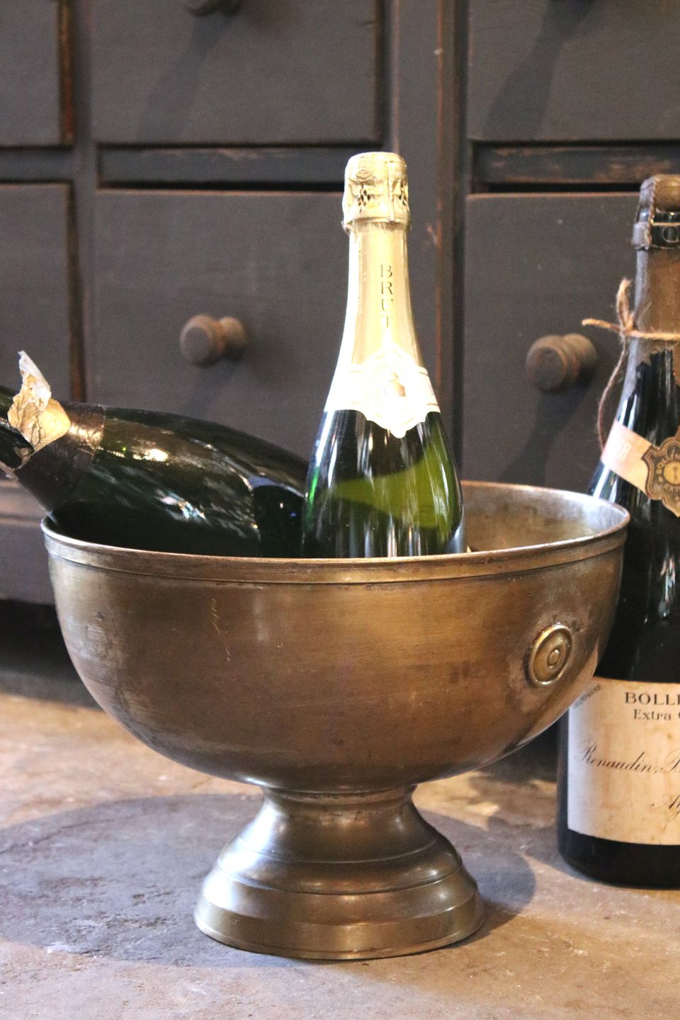 Gammel fransk champagnekøler i messing med en rigtig fin gammel patina...