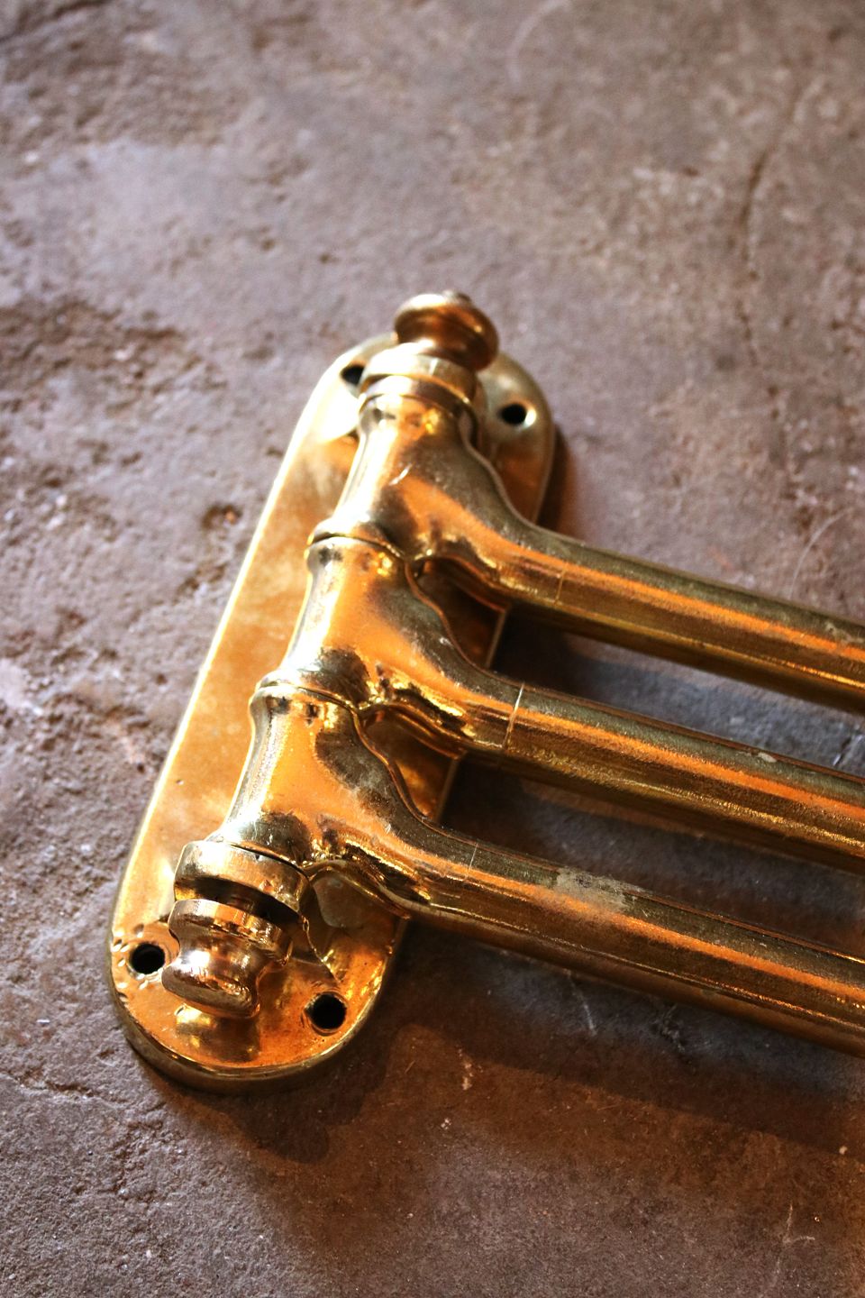Old French wall-mounted towel holder in solid brass with a fine patina...