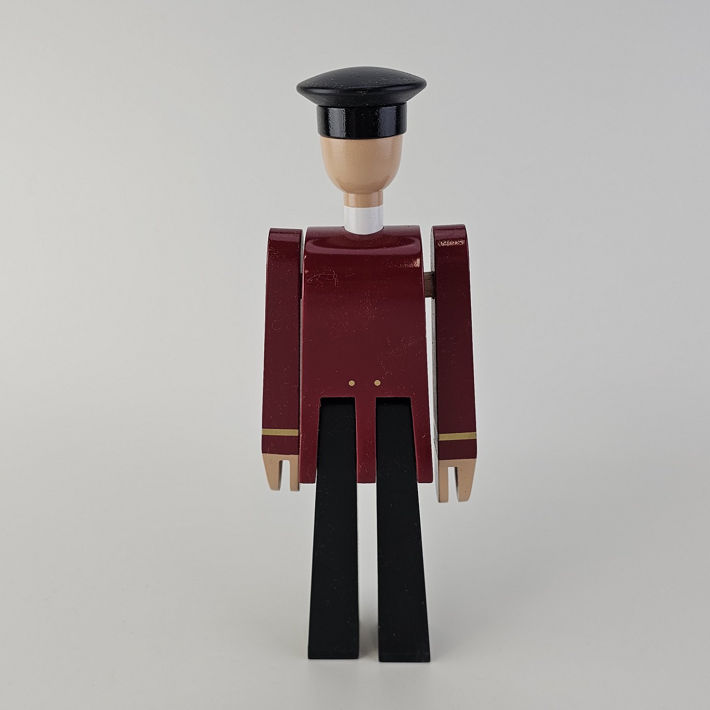 Figur i malet bøgetræ med motiv af et postbud med lædertaske, kommer i original kasse