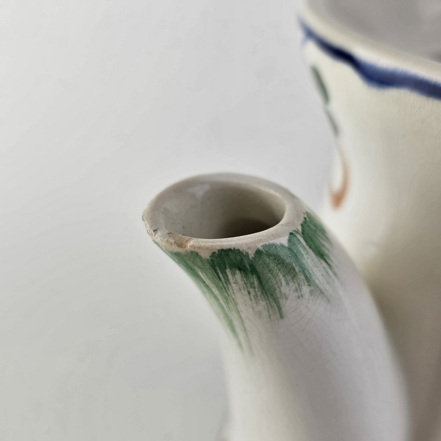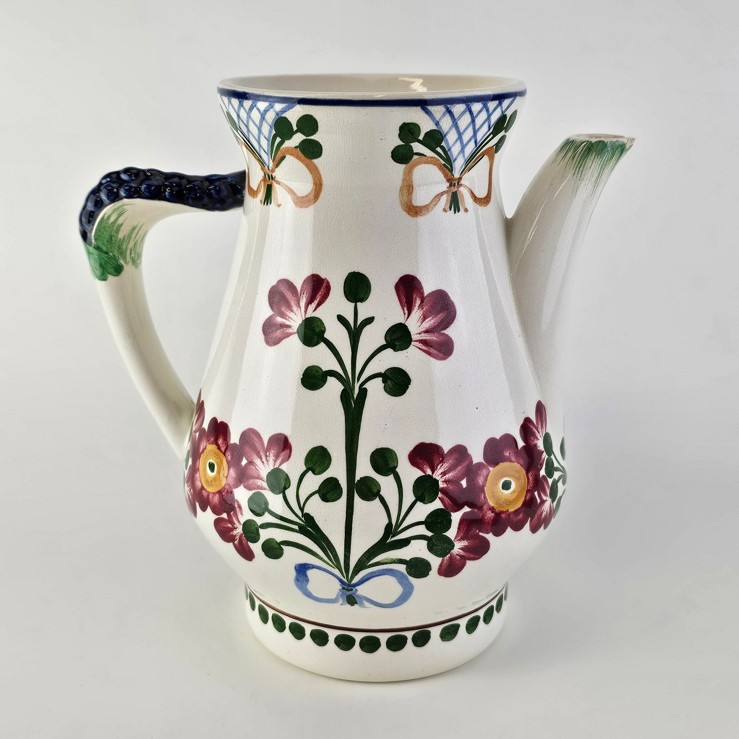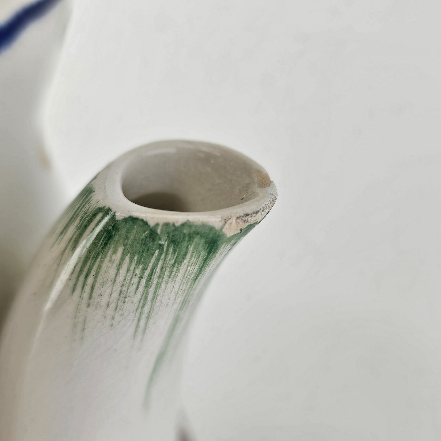 Stellet er i hvid fajance og håndmalet med dekoration af røde blomster