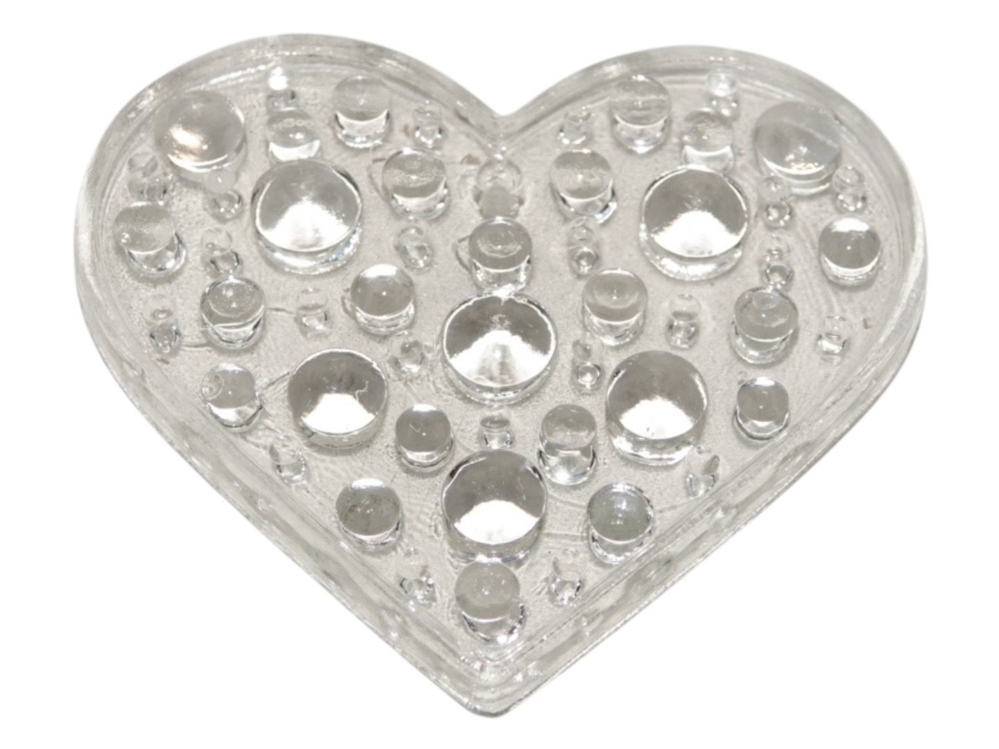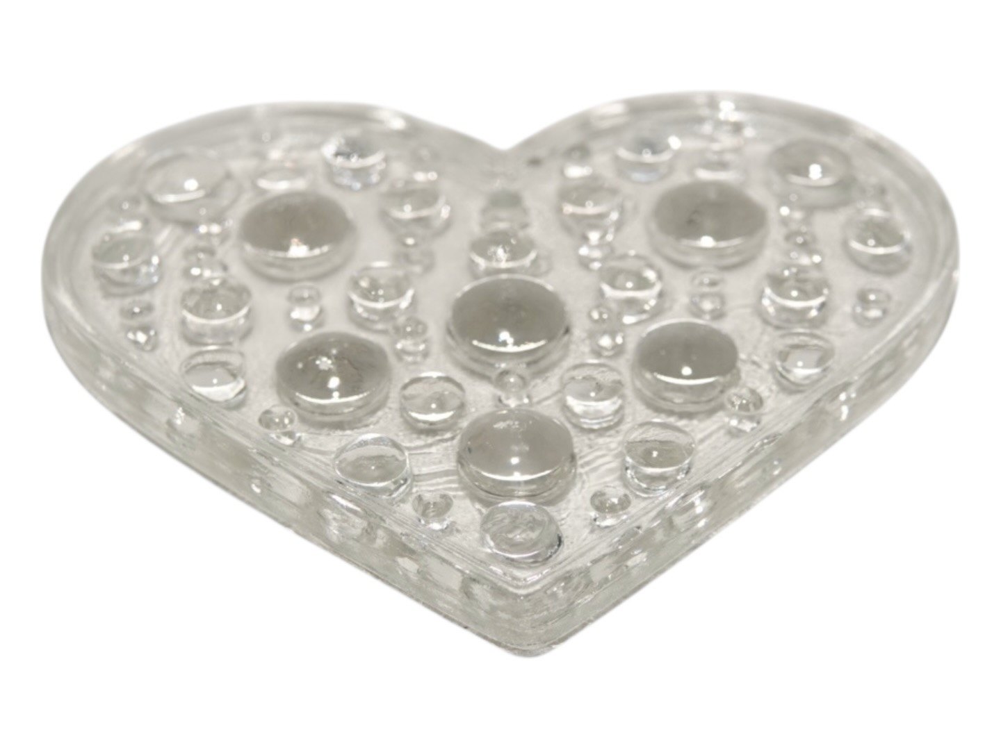 Glasværk fra Sverige, solfanger i form af hjerte i klart glas fra 1970'erne eller 1980'erne.