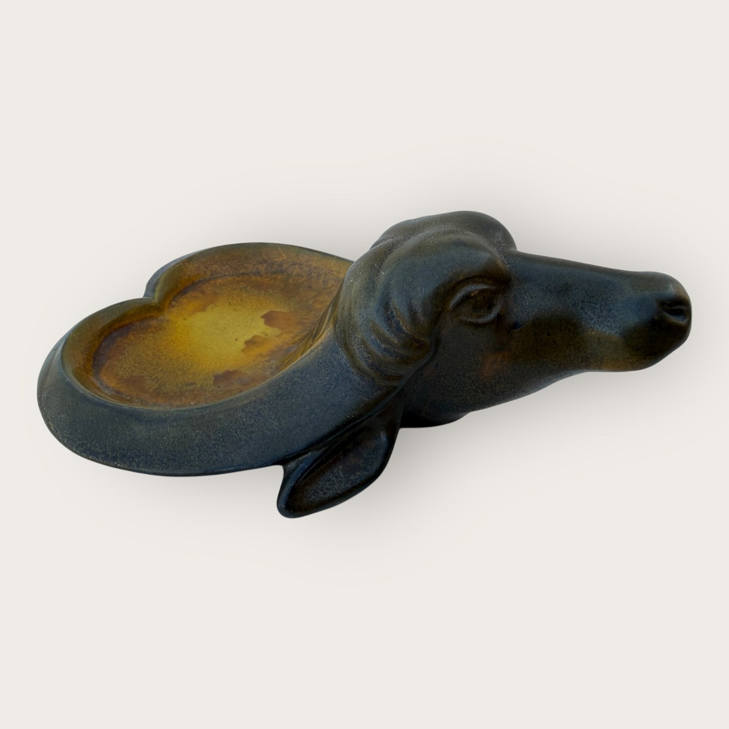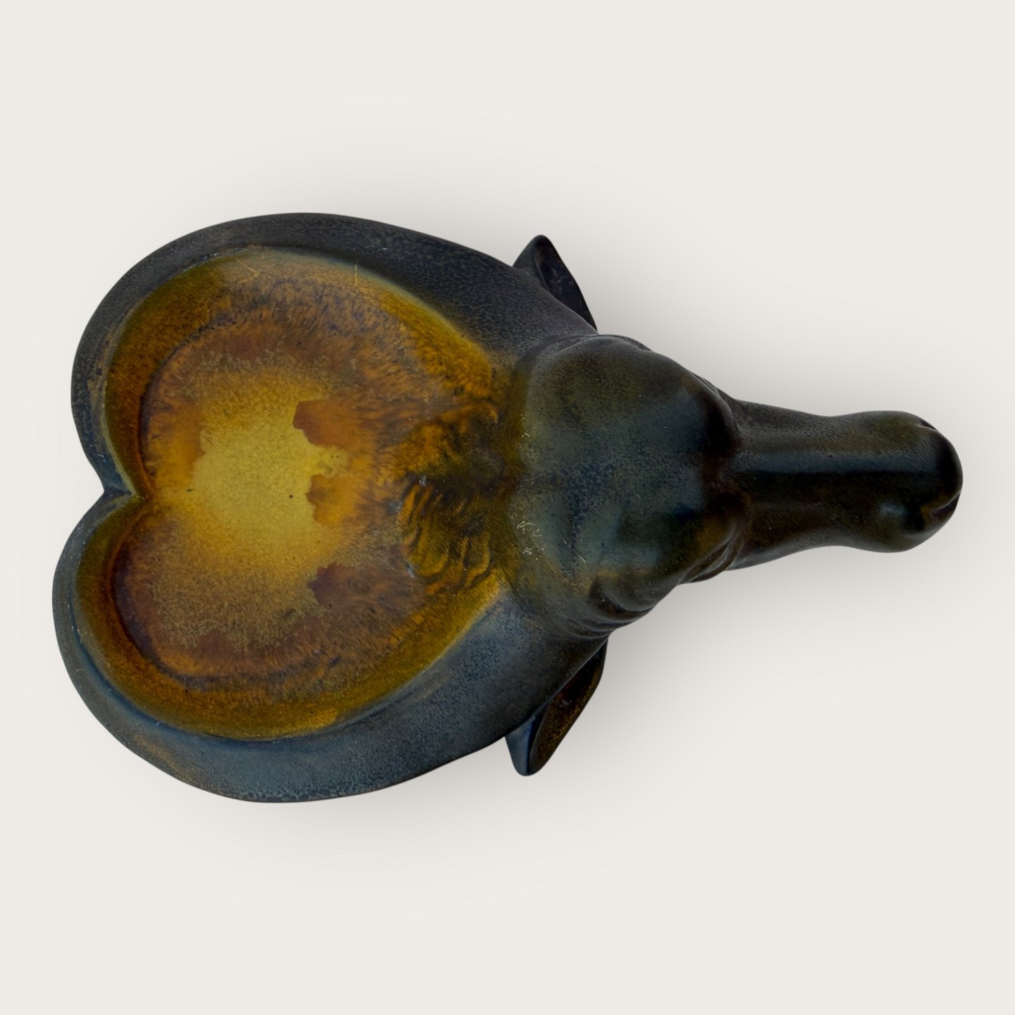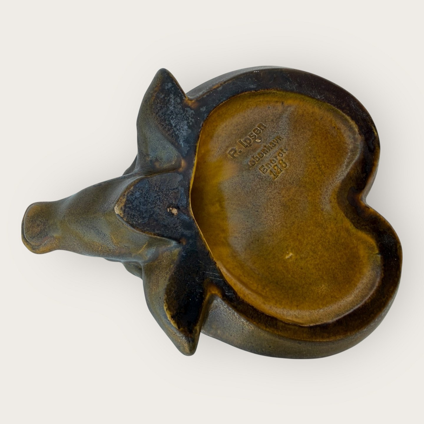 P. Ipsen / Ipsens enke, Skål med vandbøffel, mål: 17x13cm, signeret: P. Ipsen, København, 128 *Fin stand*