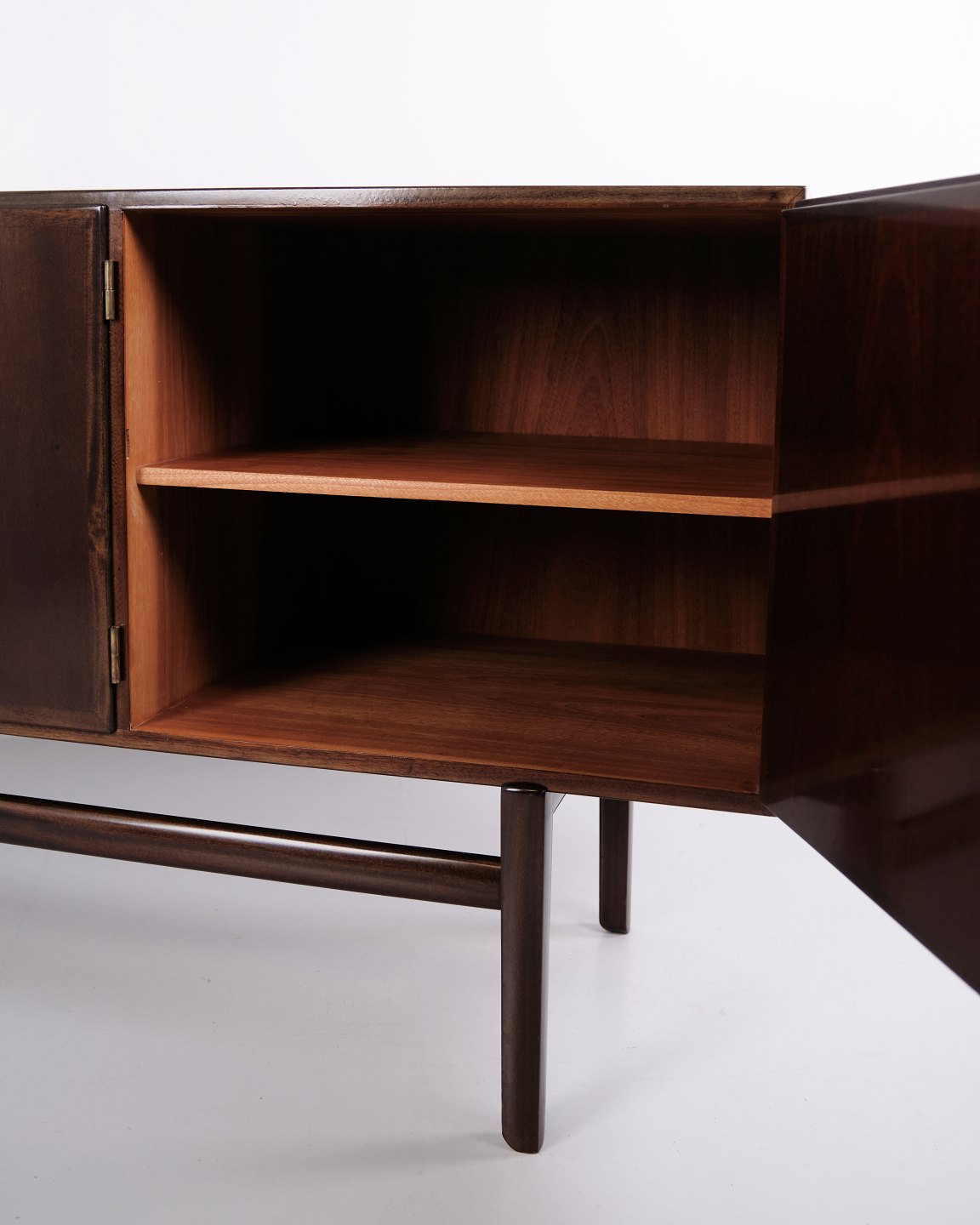 Mahogni skænk fra Rungstedlund serien af Poul Jeppesens Møbelfabrik. Klassisk dansk design med funktionelt og tidløst udtryk.