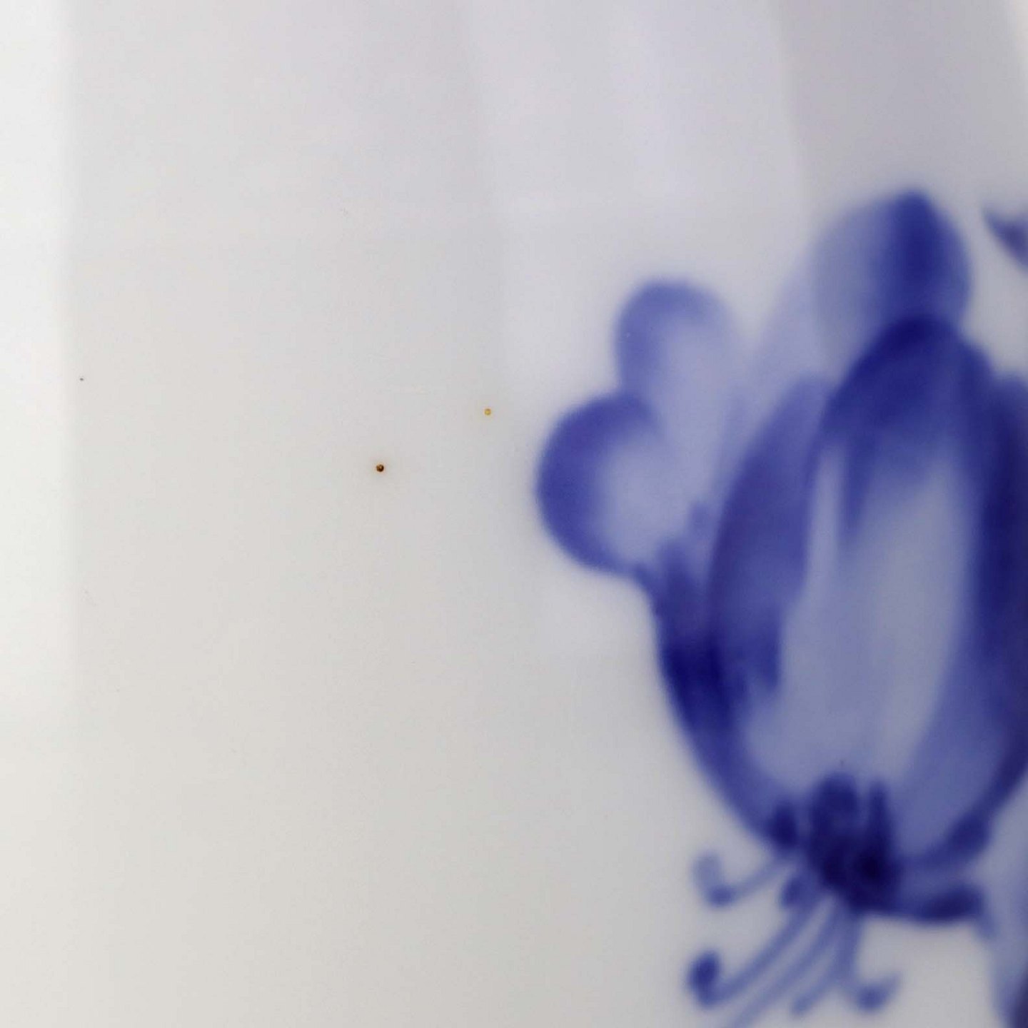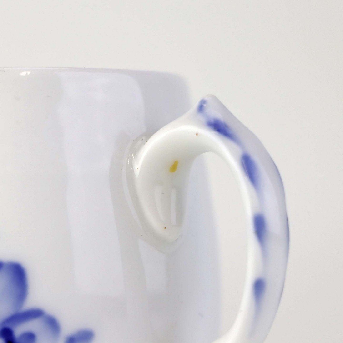 Fremstår med en gul plet i glasuren under hanken.