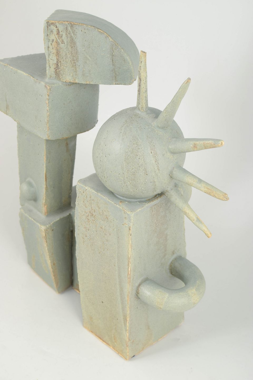 Stor stentøjsskulptur i kubistisk stil, med mat grå glasur overflade.