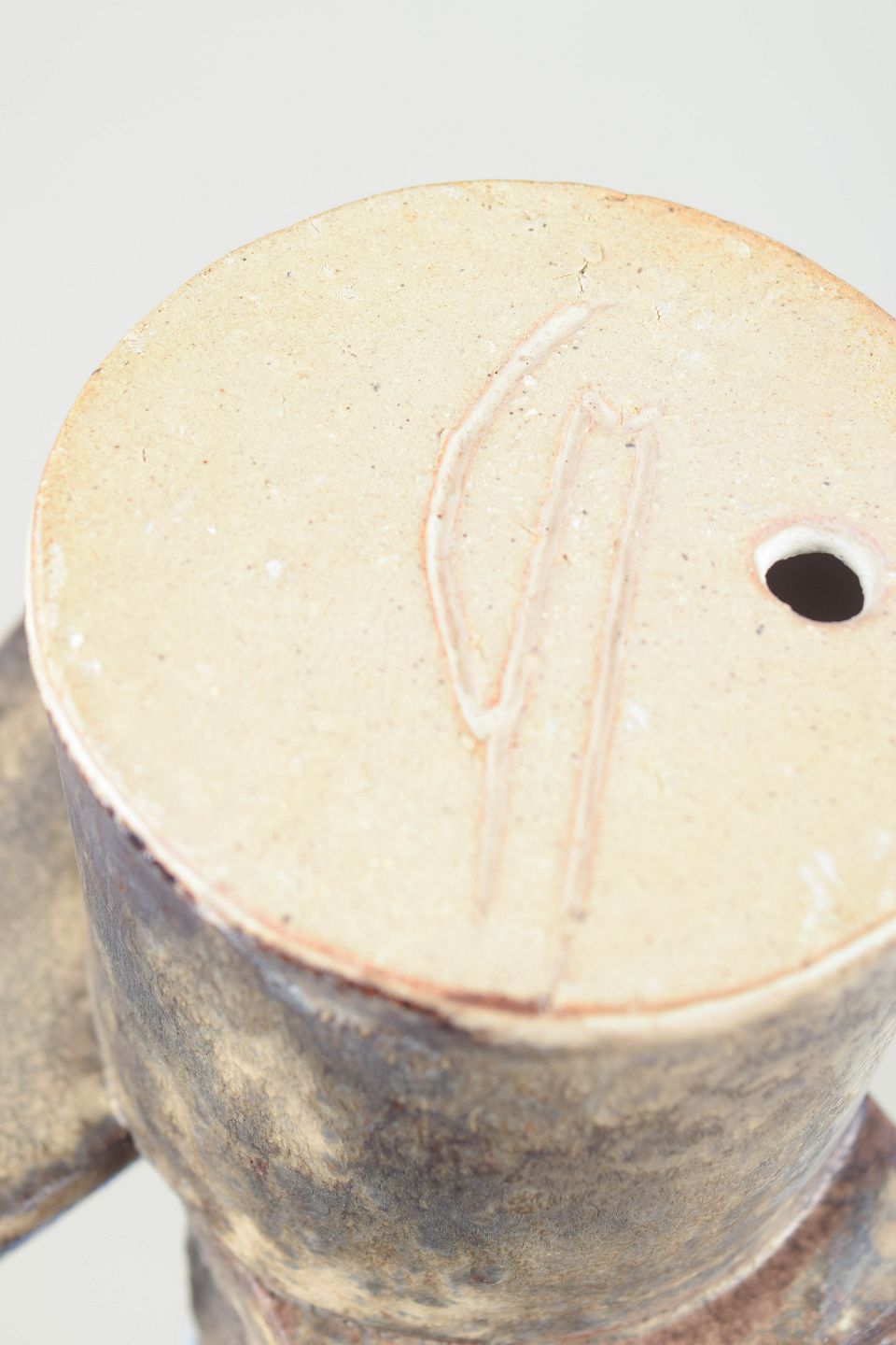 Stentøjsskulptur i kubistisk stil, med silkemat creme-grå glasur overflade.