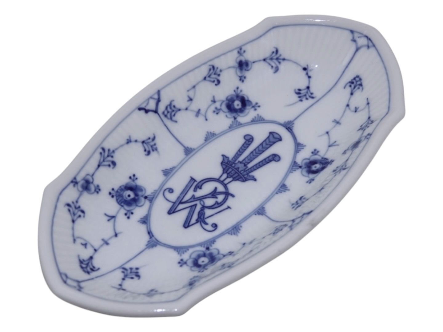 Bing & Grøndahl Blåmalet / Musselmalet tykt jernporcelæn, lille asiet med logo.