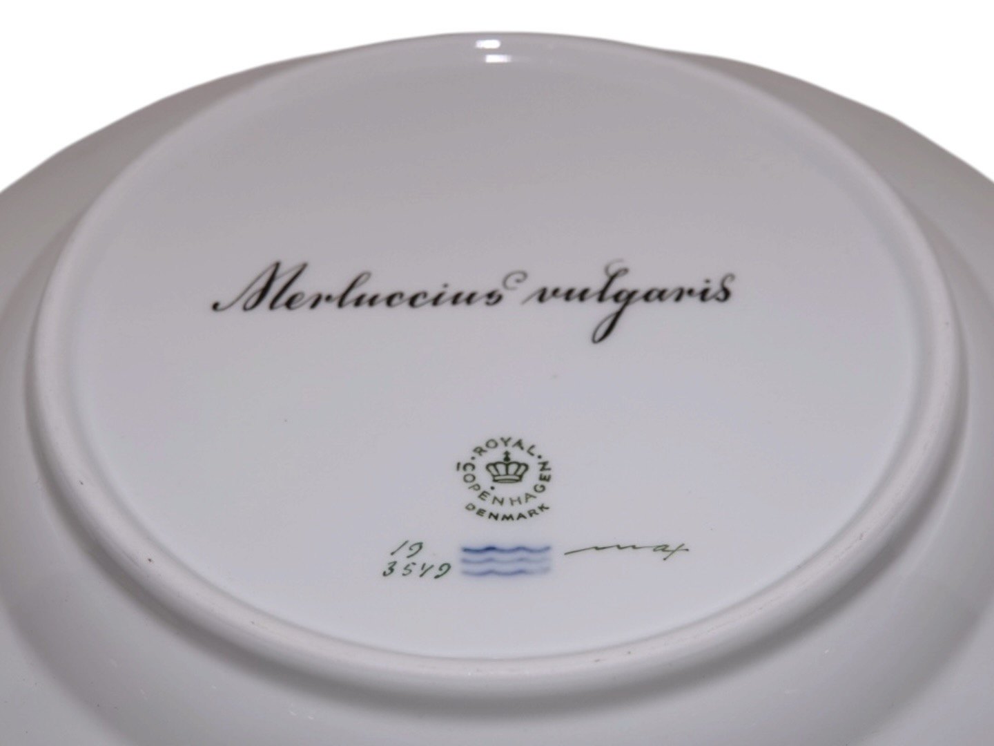 Dekoreret med fisk "Merluccius vulgaris", som er "Kulmule" på dansk.