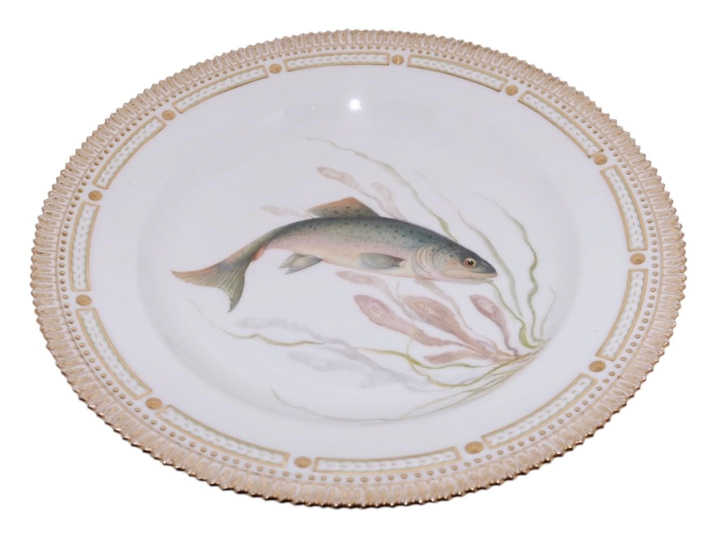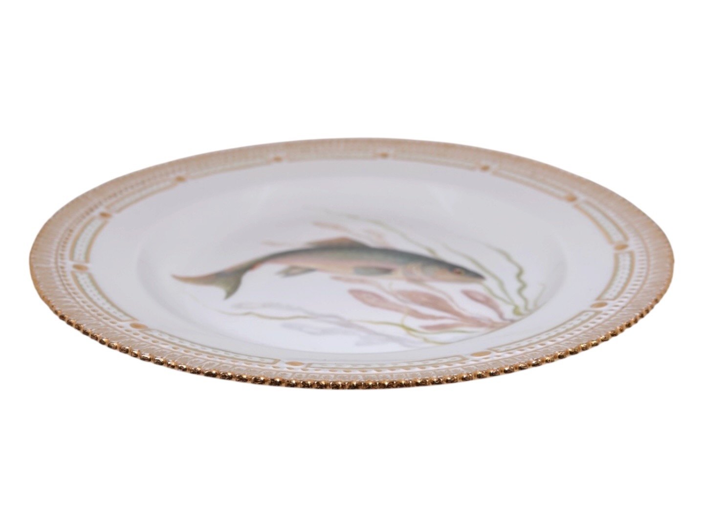 Royal Copenhagen Flora Danica, middagstallerken dekoreret med fisk.