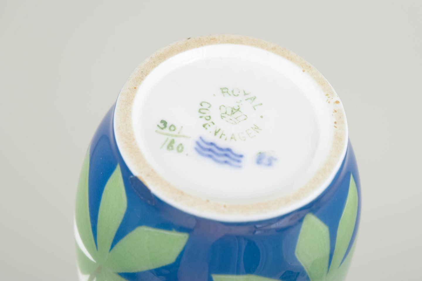 Royal Copenhagen blev grundlagt i 1775 og er en af Danmarks mest anerkendte porcelænsfabrikker. Fabrikken er kendt for sin høje kvalitet og håndmalede dekorationer. Omkring år 1900 var produktionen præget af art nouveau-stilen med organiske former og naturinspirerede motiver, som i dag er eftertragtede blandt samlere.