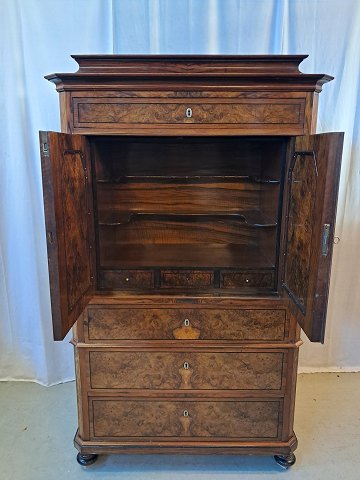 Skab i fineret mahogni og nøderod, fra 1900erne.