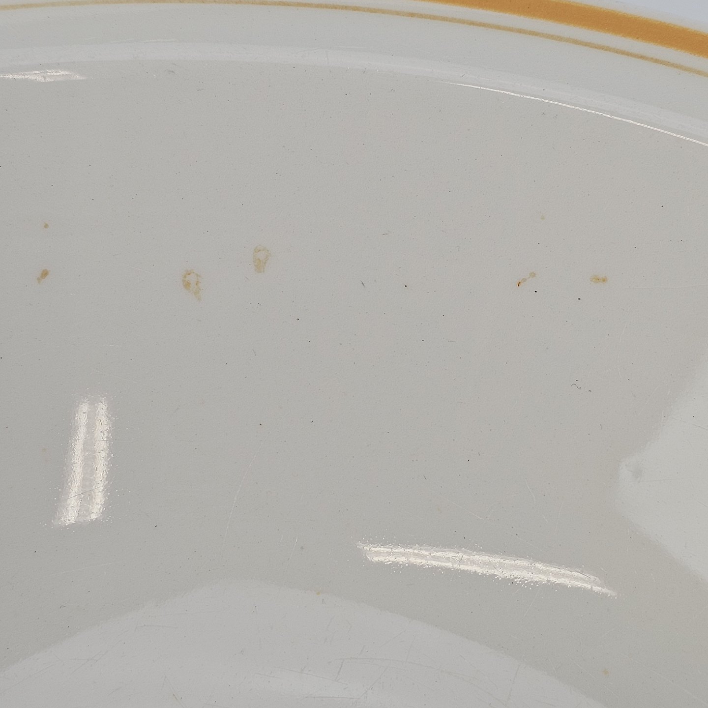 Fajancestel i stelform G med dekoration af orange stribe