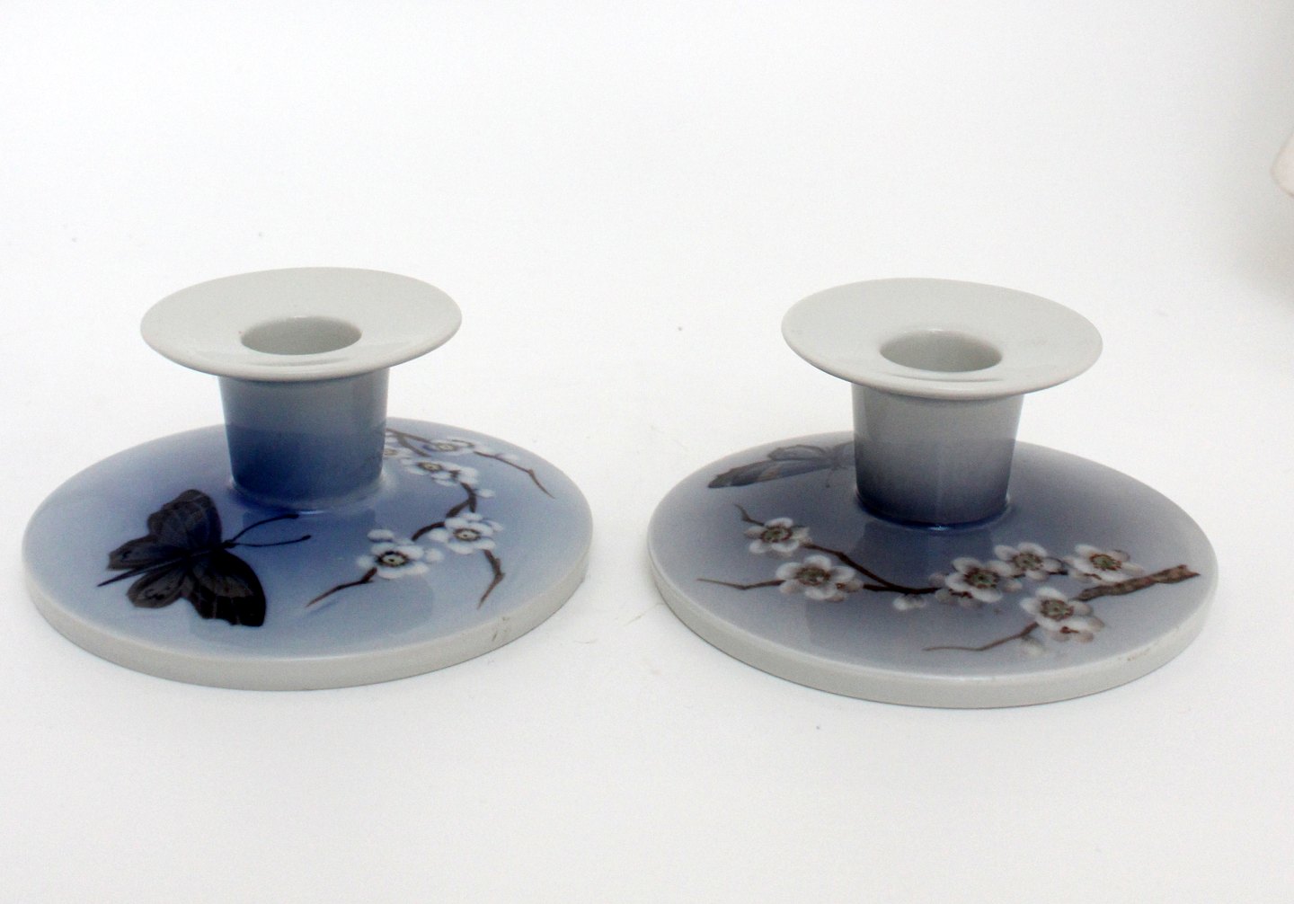 Lysestager med blomstergren og sommerfugl, Royal Copenhagen