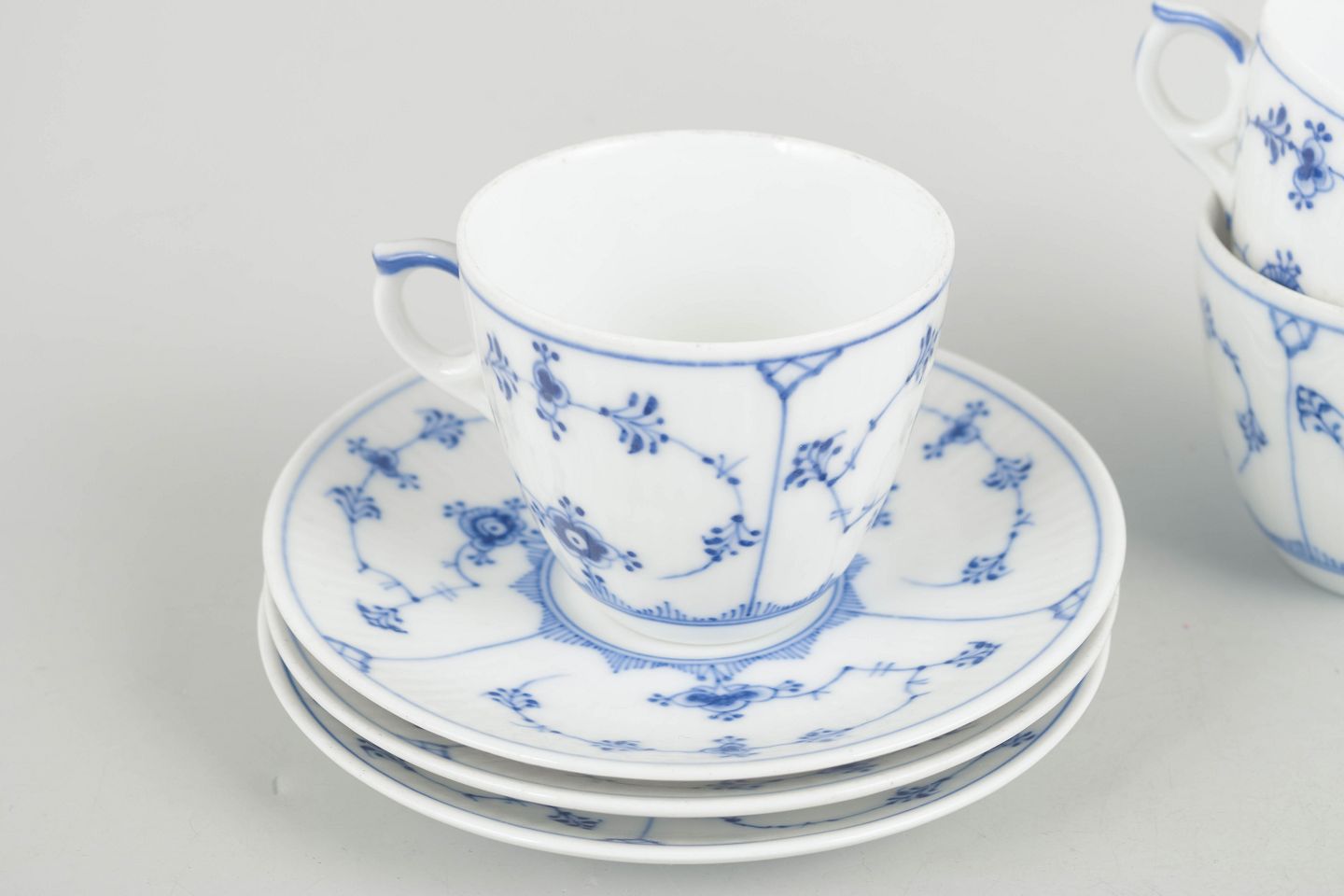 Royal Copenhagen Musselmalet Riflet, sæt af tre kaffekopper med underkopper.