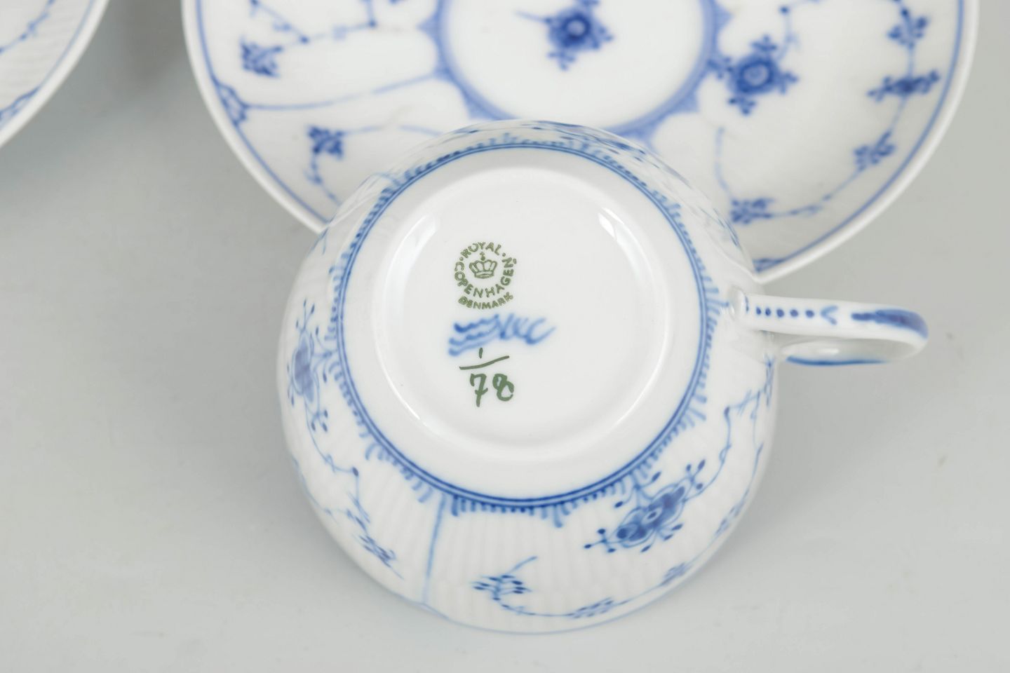 Royal Copenhagen Musselmalet Riflet morgenkopper med underkopper, par. Sjælden.
