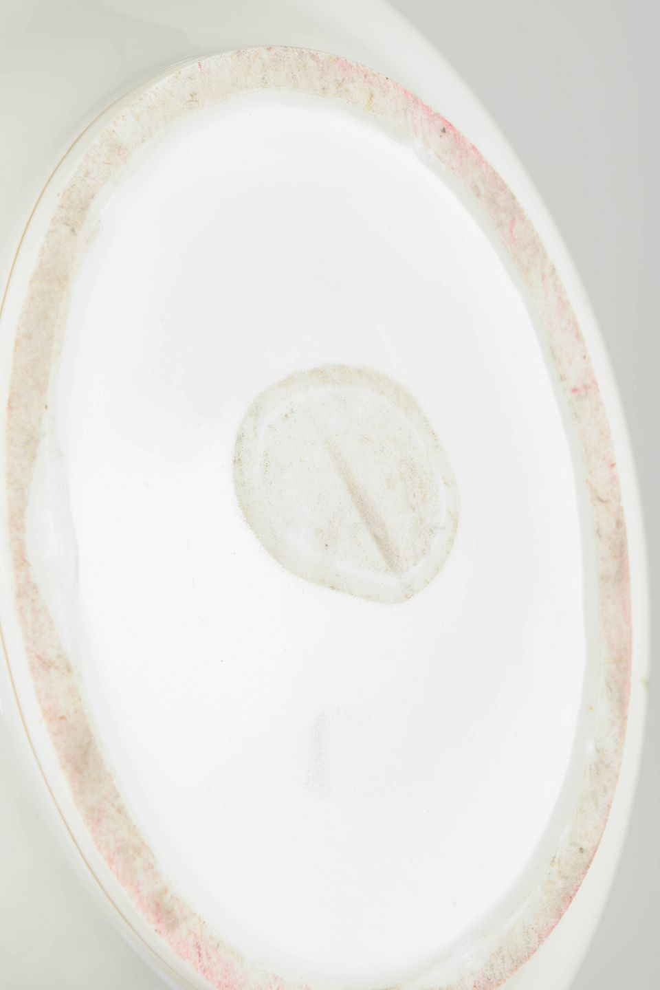 Stor terrin i håndmalet porcelæn med floral dekoration i polykrome farver og forgyldte detaljer, udført i klassisk Saksisk blomst mønster. Uden synlig fabriksmærkning.