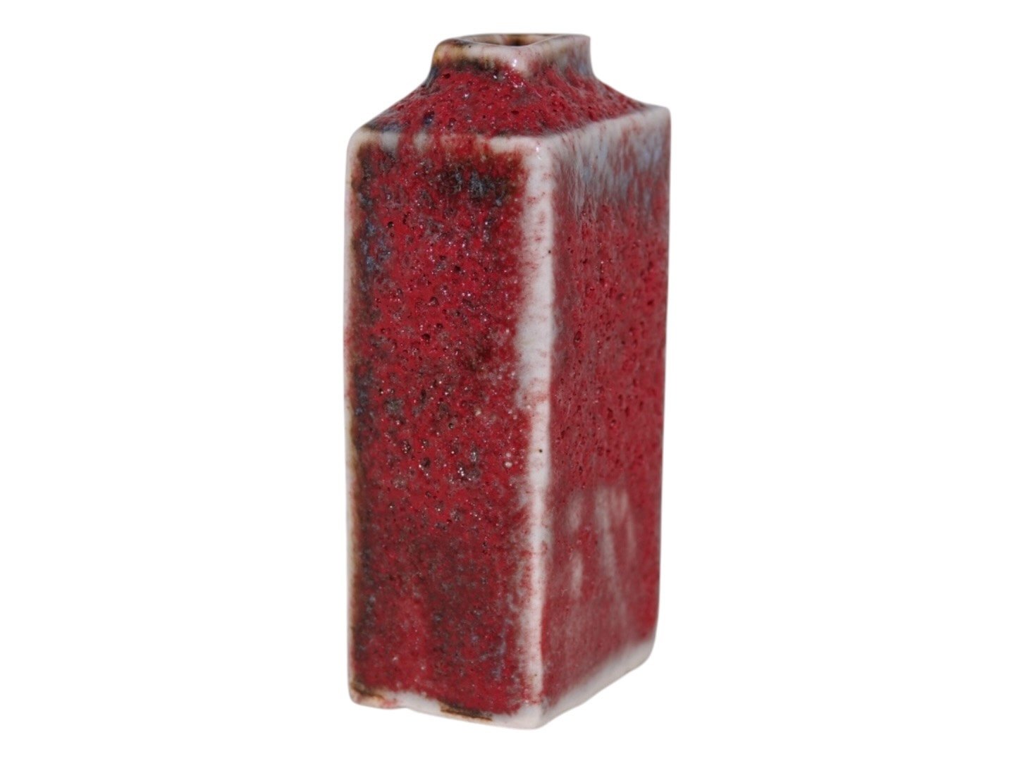Bente Skjøttgaard keramik, miniature vase med rød lavaglasur.