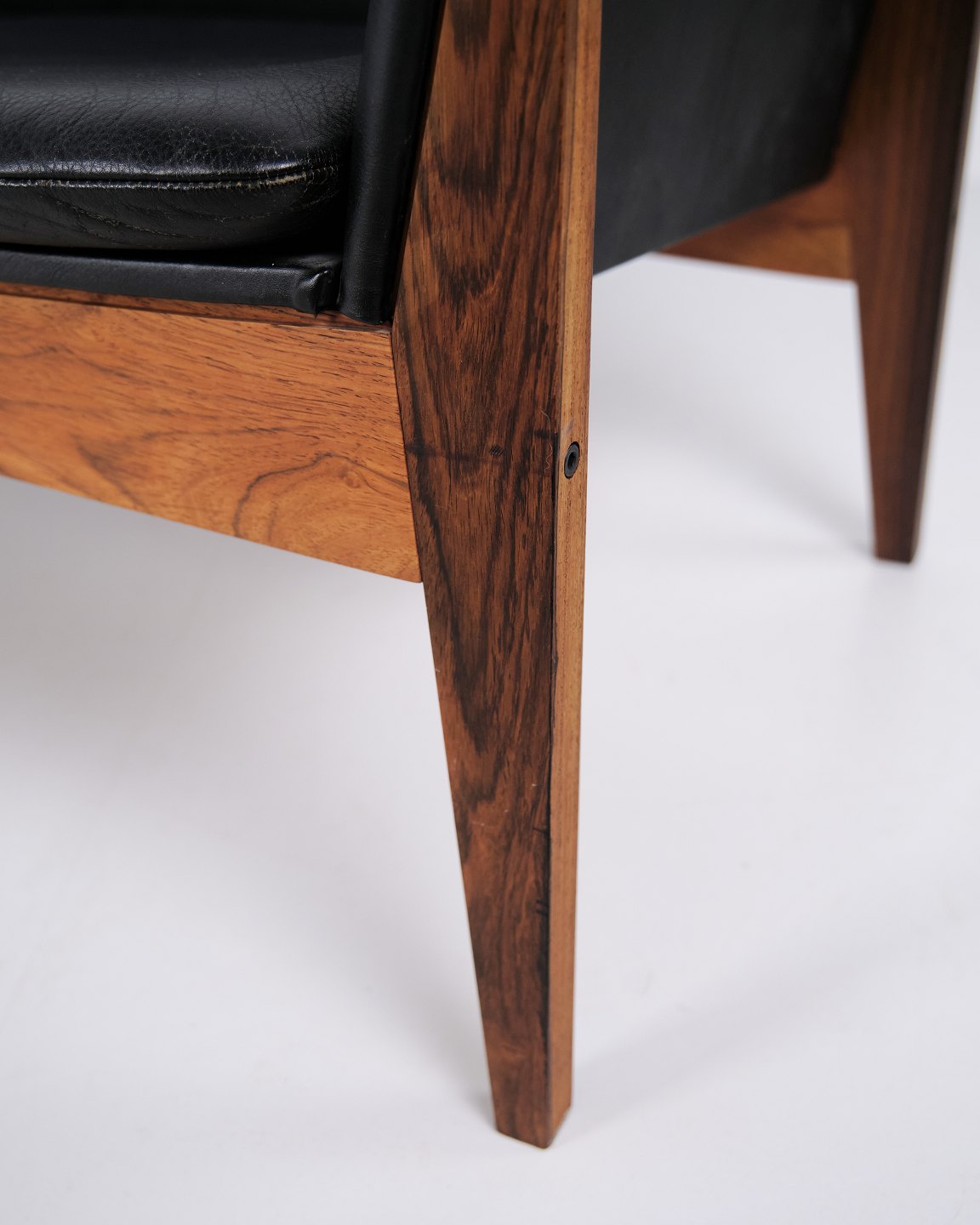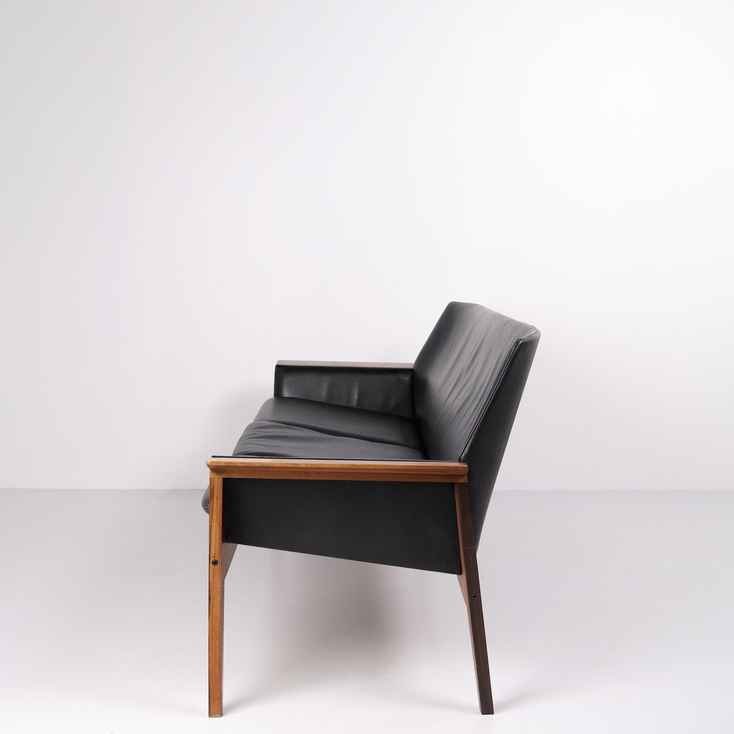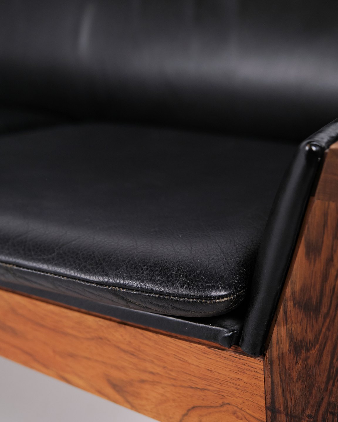 Tre Personers Sofa Model "Senior" i Rio Palisander og Originalt Sort Læder af Steen Østergaard for Jason Møbler, 1960erne
