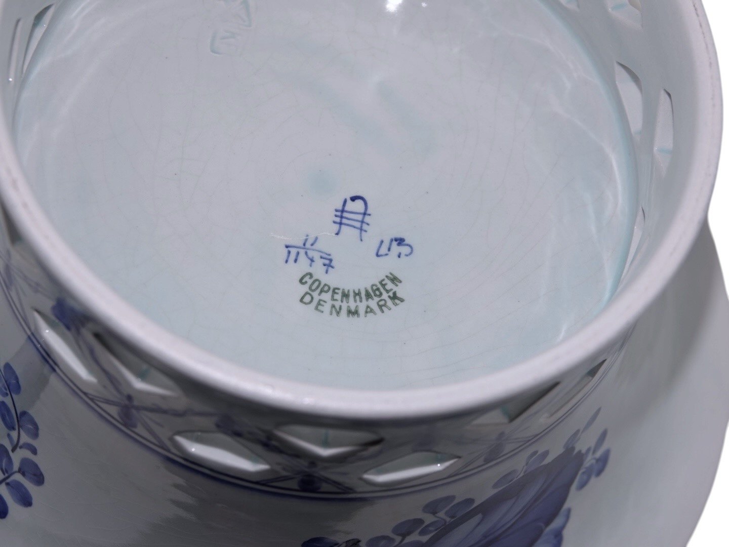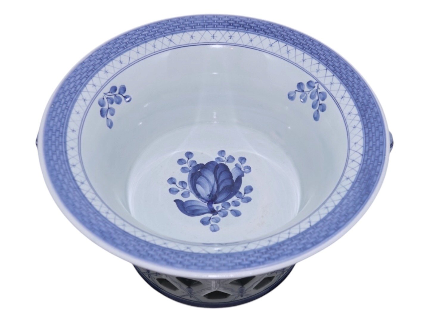 Aluminia Tranquebar, stor og sjælden skål med gennembrudt kant.