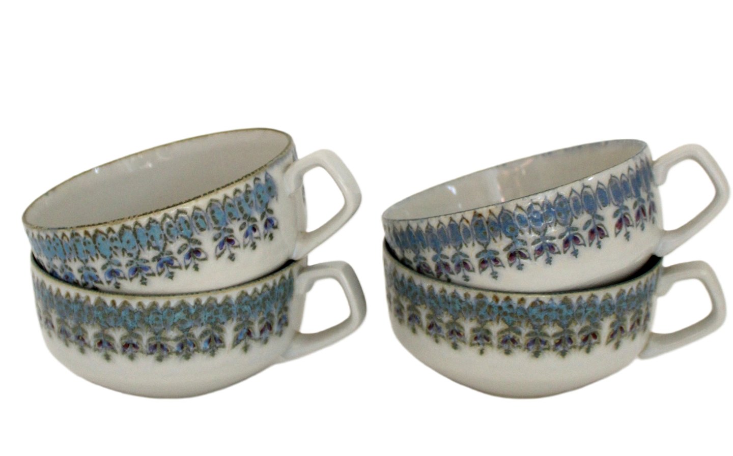 Aluminia, Berte, Tekop med underkop. Designet af Berte Jessen. Produceret i perioden 1962-66. OBS: Krakeleringer på alle dele, kop, underkop og kagetallerken. Ingen skår.