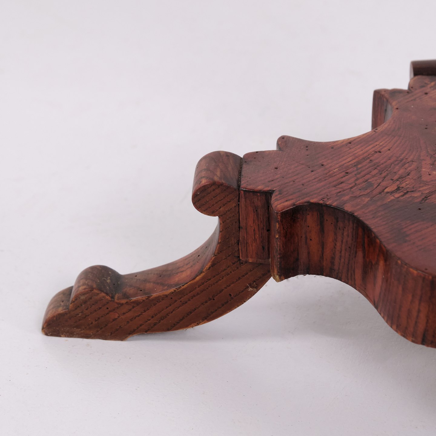 Antikt sidebord udført i mahogni med rektangulær profileret plade, drejet søjlefod og fire svungne ben. Bordet har klassiske proportioner og detaljer typiske for europæiske salon- og sideborde fra 1800-tallet. Velegnet som lampebord, konsolbord eller mindre entrébord. Mahogni var et foretrukket materiale i perioden på grund af styrke, glød og flot åretegning.