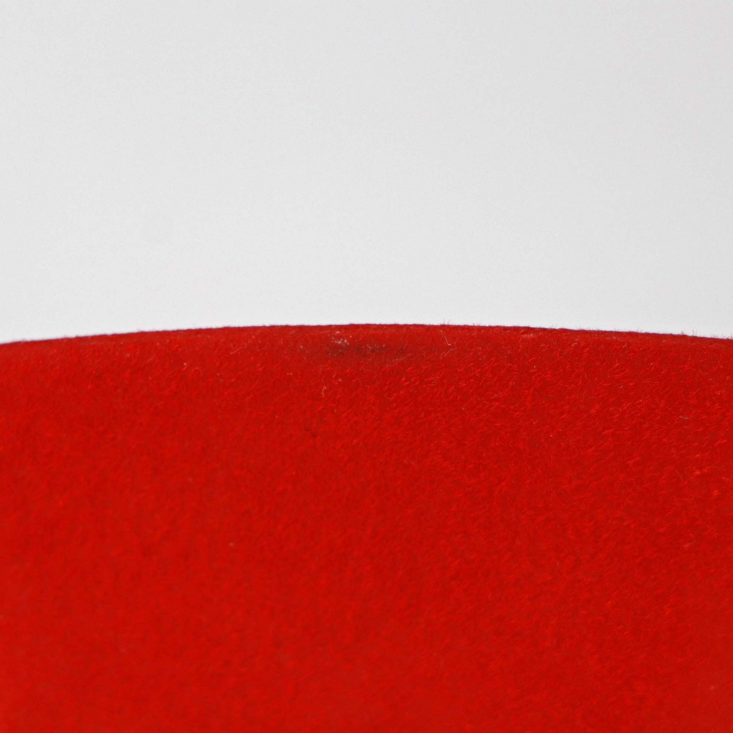 Miniature designermøbel til dukkehus med model af Arne Jacobsen's Svanesofa i rød farve med stel i metal.