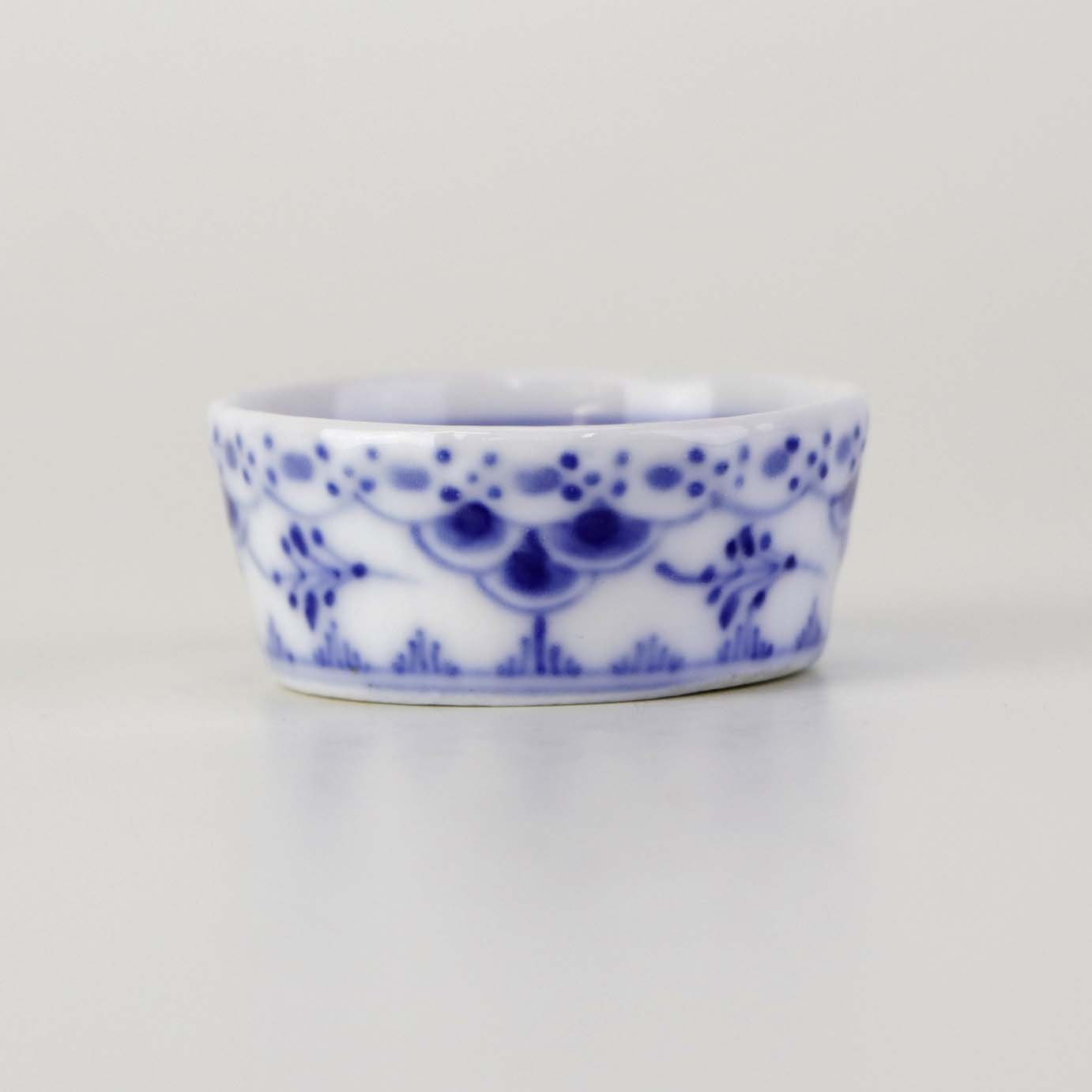 Rundt kar til salt kongeligt porcelæn fra stellet Musselmalet Halvblonde. Nr. 1/706