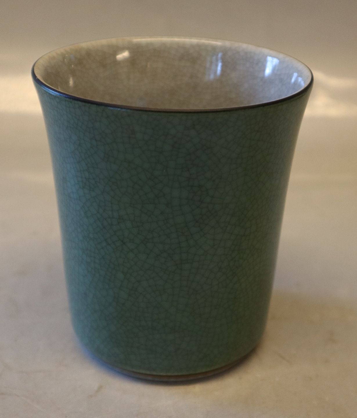 457-3613 Kgl. Grøn vase med gråt og guld 10.5 x 9.5 cm Kongelig Dansk Craquelé, Craquele