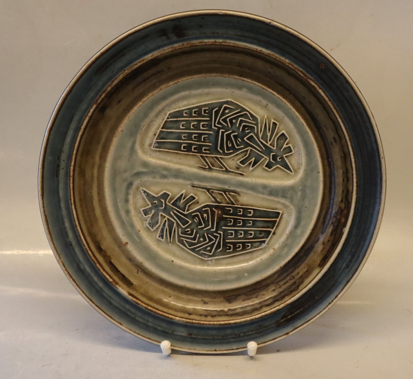 21847 Kgl. Bordskål 26 cm August 1961 Jørgen Mogensen JM Stiliserede fugle Royal Copenhagen stentøj I fin og hel stand