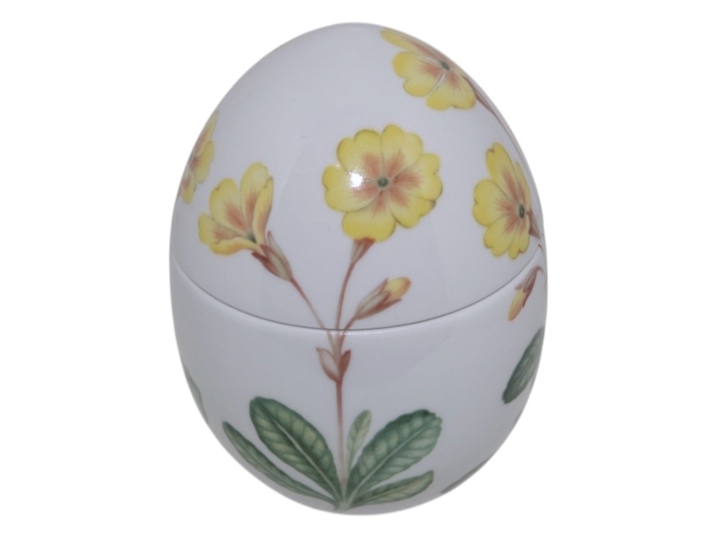 Royal Copenhagen påskeæg bonbonniere dekoreret med gul primula.