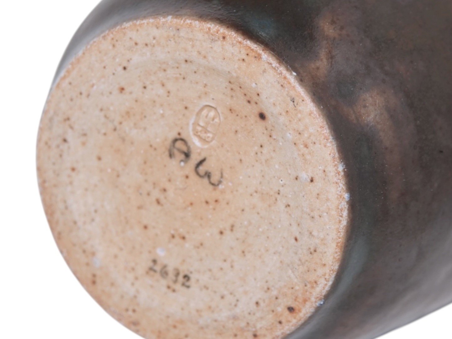 Bing & Grøndahl keramikvase, signeret AW for Hans Ancher Wolfsen (1870–1924). Wolfsen overtog Søholm i 1887 sammen med sin bror og spillede en væsentlig rolle i fabrikkens kunstneriske og håndværksmæssige udvikling.