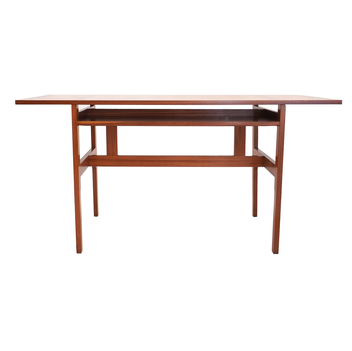 Mogens Koch skrivebord udført i maghogni. Under skriveplade hylde til papirer. Præsenteret 1957 fremstillet af Rud. Rasmussen. H: 74cm. Plade: 76x151,5cm