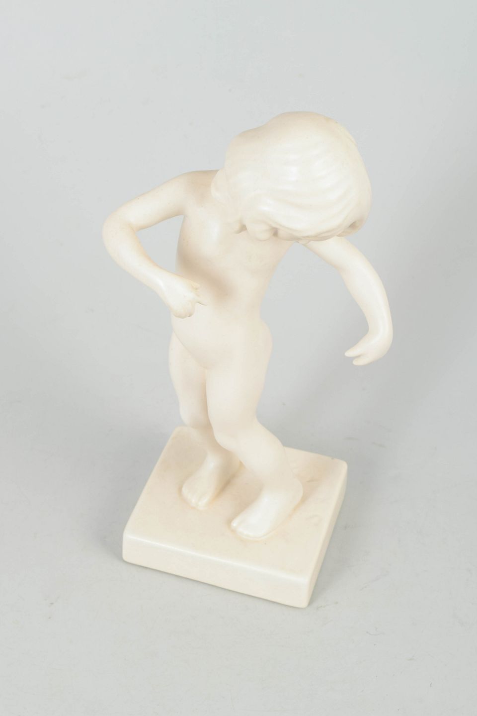 Klassisk inspireret porcelænsfigur efter antik skulptur, udført med bløde, naturalistiske former og fin modellering. Modellen er nummereret 888.