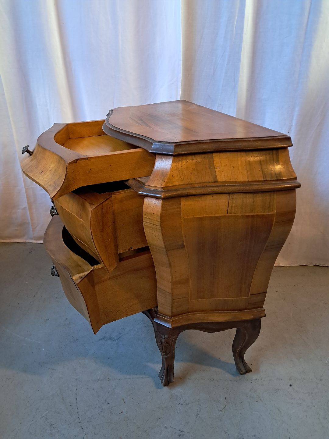 Rokoko kommode i fineret nødetræ, fra 1980erne.