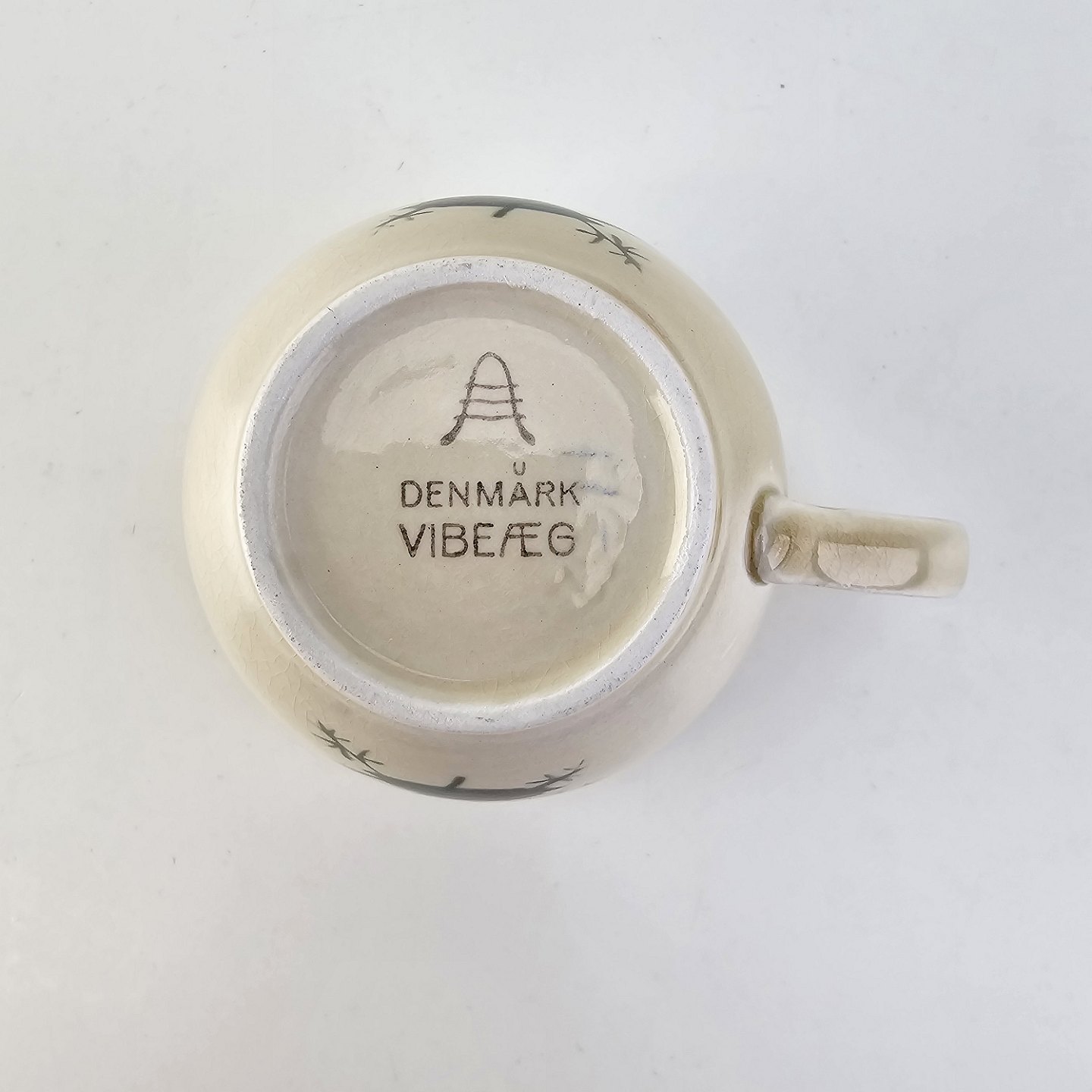 Kaffekop med underkop i fajance fra stellet Vibeæg