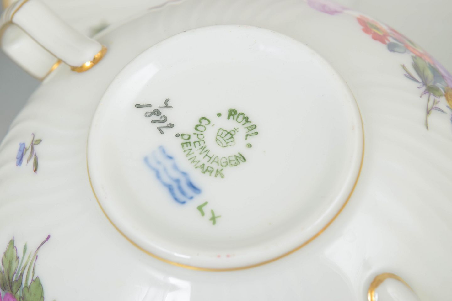 Royal Copenhagen blev grundlagt i 1775 og er en af Danmarks mest anerkendte porcelænsfabrikker. Fabrikken er kendt for sit håndmalede porcelæn og høje kvalitet, hvor hvert stykke dekoreres individuelt af uddannede malere. Mønstre som saksisk blomst afspejler en lang europæisk tradition for blomsterdekoration på porcelæn og er fortsat eftertragtede blandt samlere verden over.