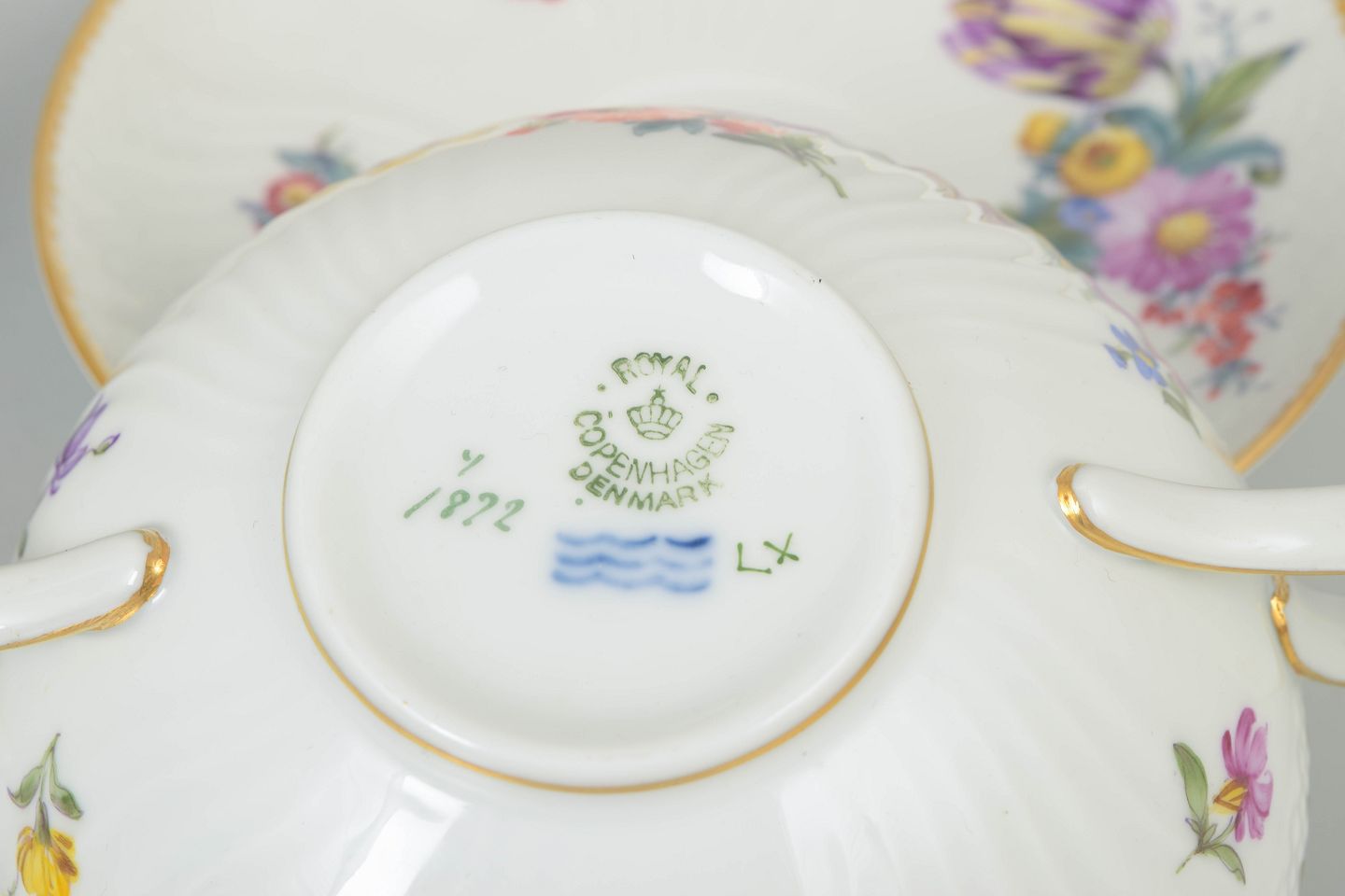 Royal Copenhagen blev grundlagt i 1775 og er en af Danmarks mest anerkendte porcelænsfabrikker. Fabrikken er kendt for sit håndmalede porcelæn og høje kvalitet, hvor hvert stykke dekoreres individuelt af uddannede malere. Mønstre som saksisk blomst afspejler en lang europæisk tradition for blomsterdekoration på porcelæn og er fortsat eftertragtede blandt samlere verden over.