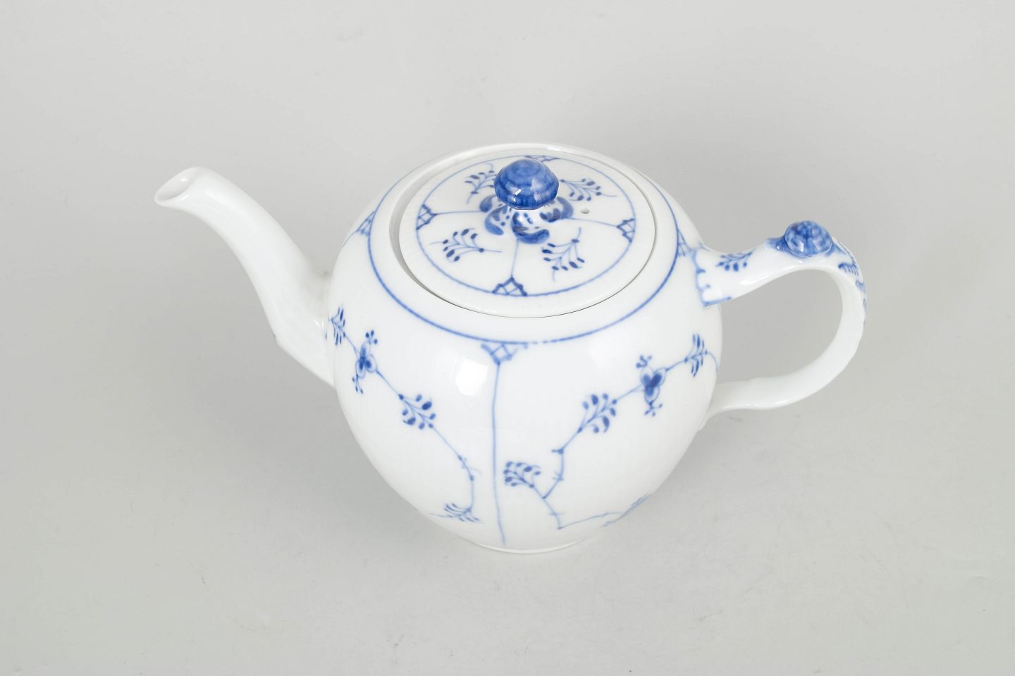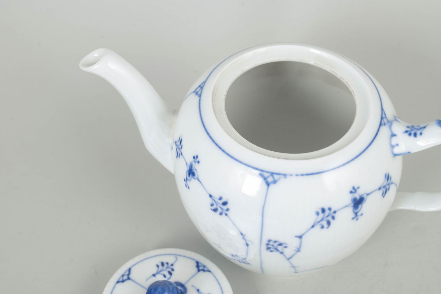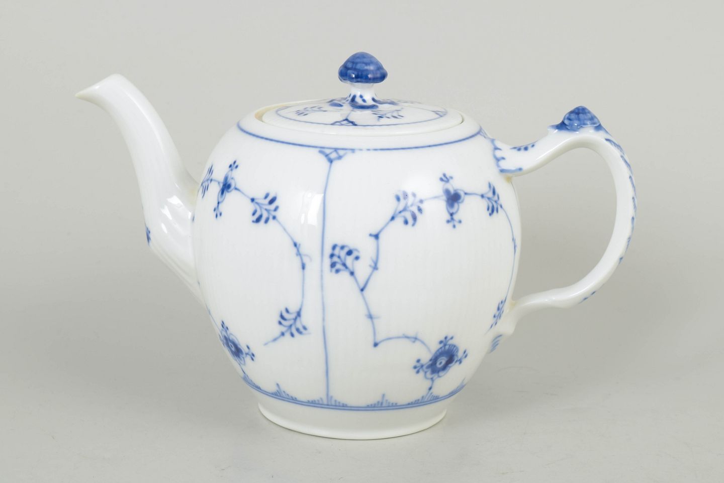 Klassisk tekande i hvidt porcelæn med håndmalet blå musselmalet riflet dekoration, model 1/259 fra 1920’erne, 2. sortering.