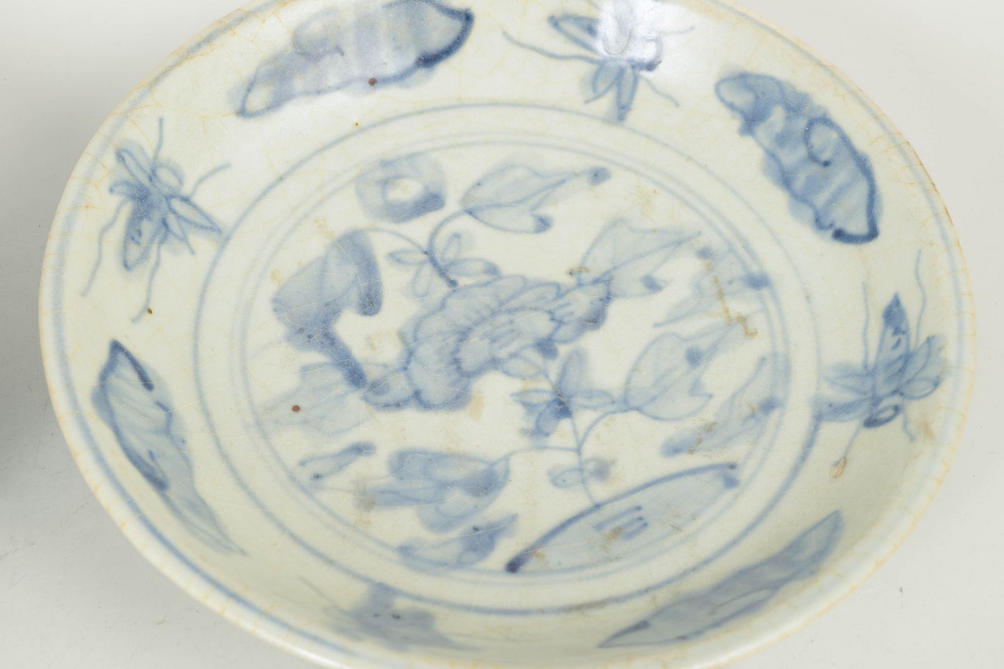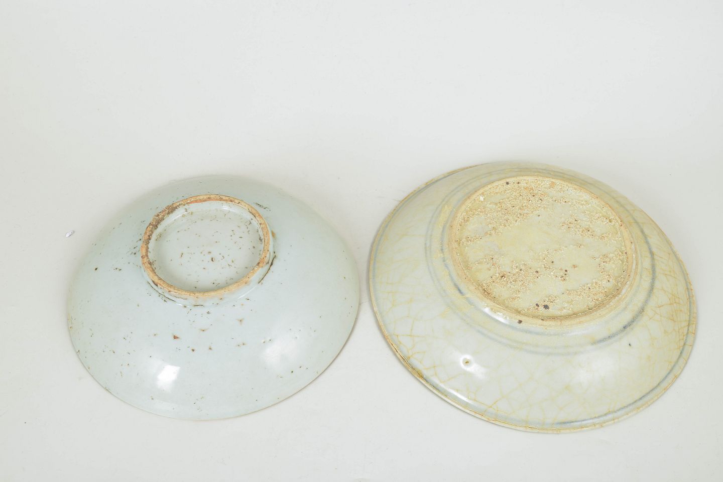 To hånddrejede porcelænsskåle med håndmalet blå dekoration under glasur, med klassiske motiver fra perioden.