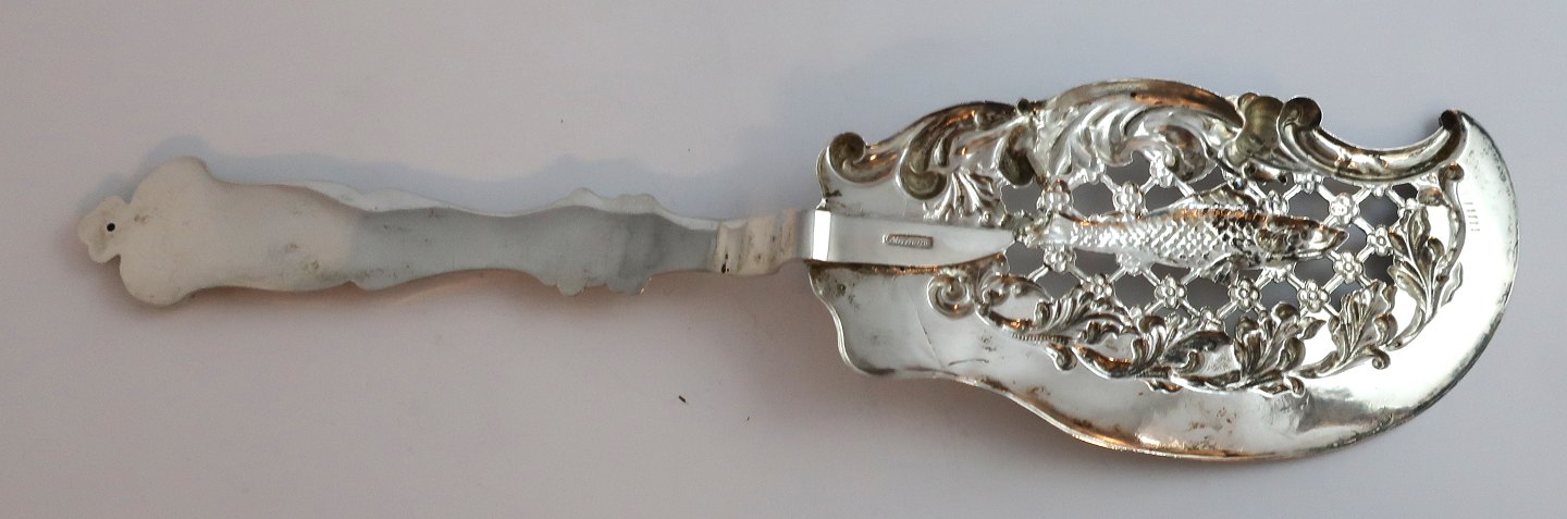 Jørgen Henning Momme, Randers. (Momme). Sølv fiskespade. Længde 30 cm.