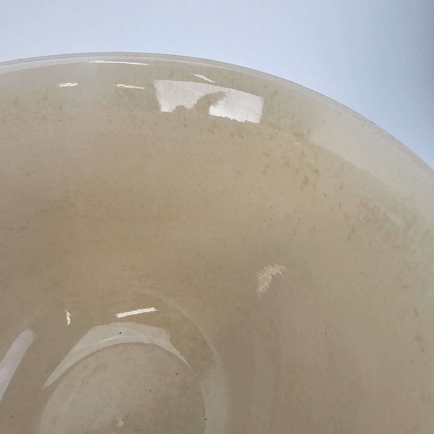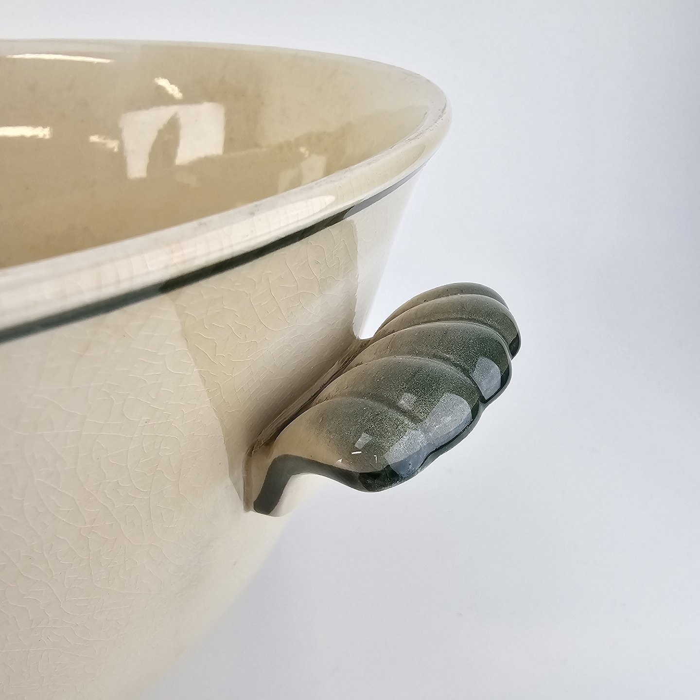 Fajancestel i stelform Viktoria II (Fletværk) med flettet kant og dekoration af en vibeæg blomst i violet og grøn, fremstillet i perioden 1934-1967