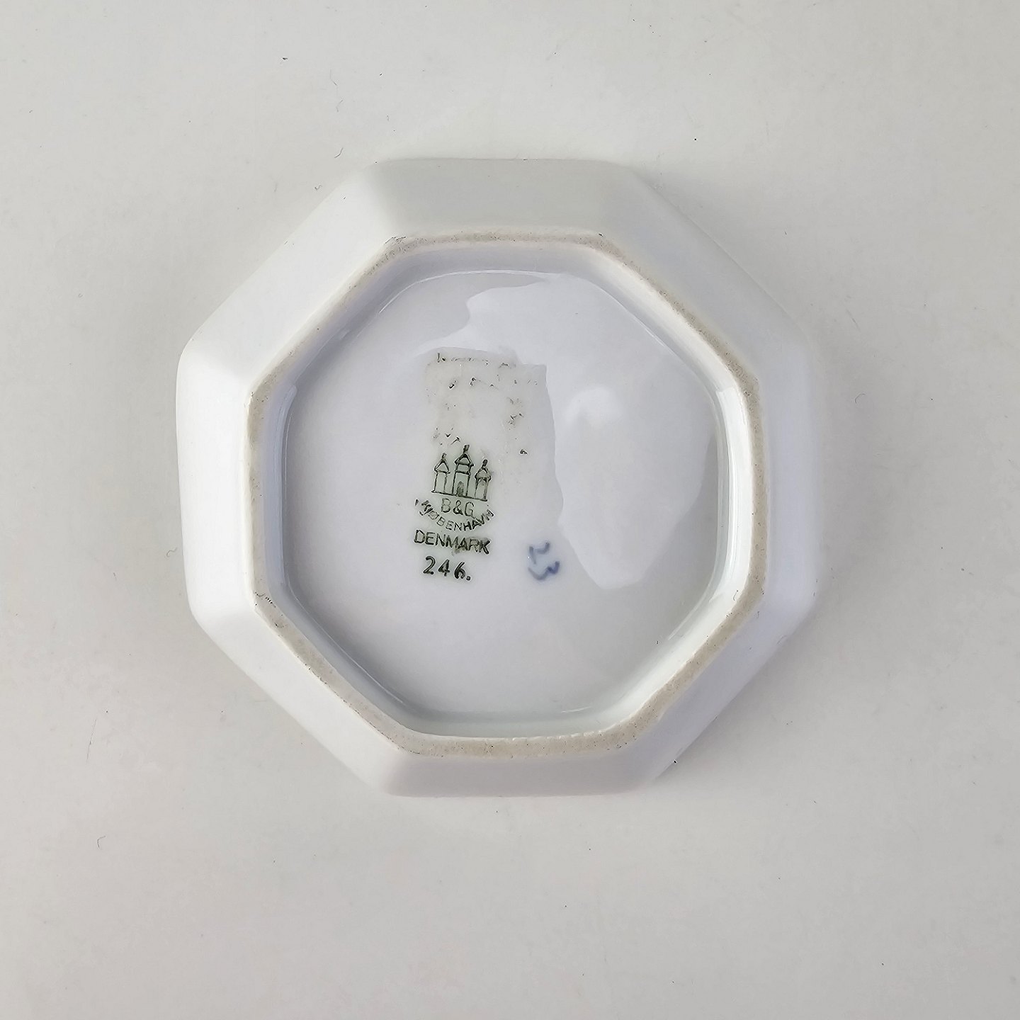 Empire er hvidt porcelæn med skelform og motiv af guirlander med blå blomster