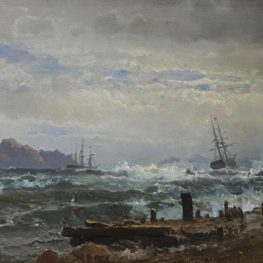 C. F. Sørensen; Mariner maleri, motiv ved Mandal i Norge, 1873