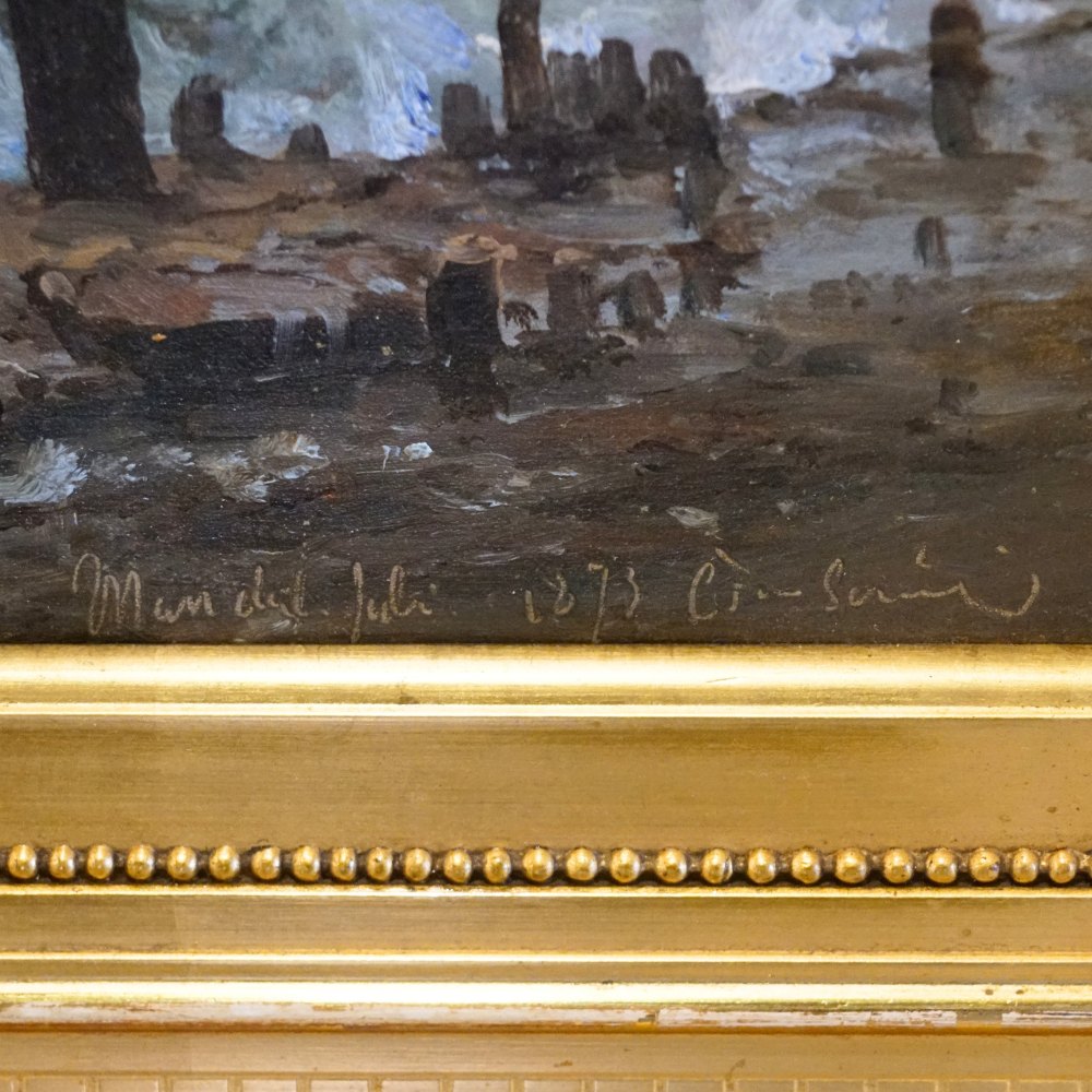 Mariner maleri af Carl Frederik Sørensen, motiv ved Mandal i Norge, juli 1873. Olie på lærred. Signeret "C. F. Sørensen" derudover indridset "Mandal Norge juli 1973".
