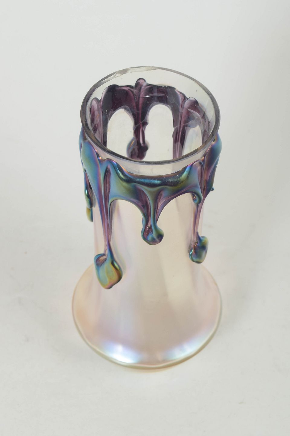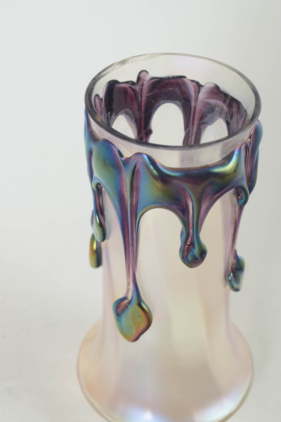 Johann Lötz Witwe var et østrigsk glasværk grundlagt i 1836 i Klostermühle i Bøhmen. Glasværket opnåede international anerkendelse omkring år 1900 for sine iriserende kunstglas med organiske former og avancerede glasteknikker. I mellemkrigstiden udviklede produktionen sig mod mere skulpturelle og dekorative udtryk, ofte med pålagte glaselementer som ses på denne vase.