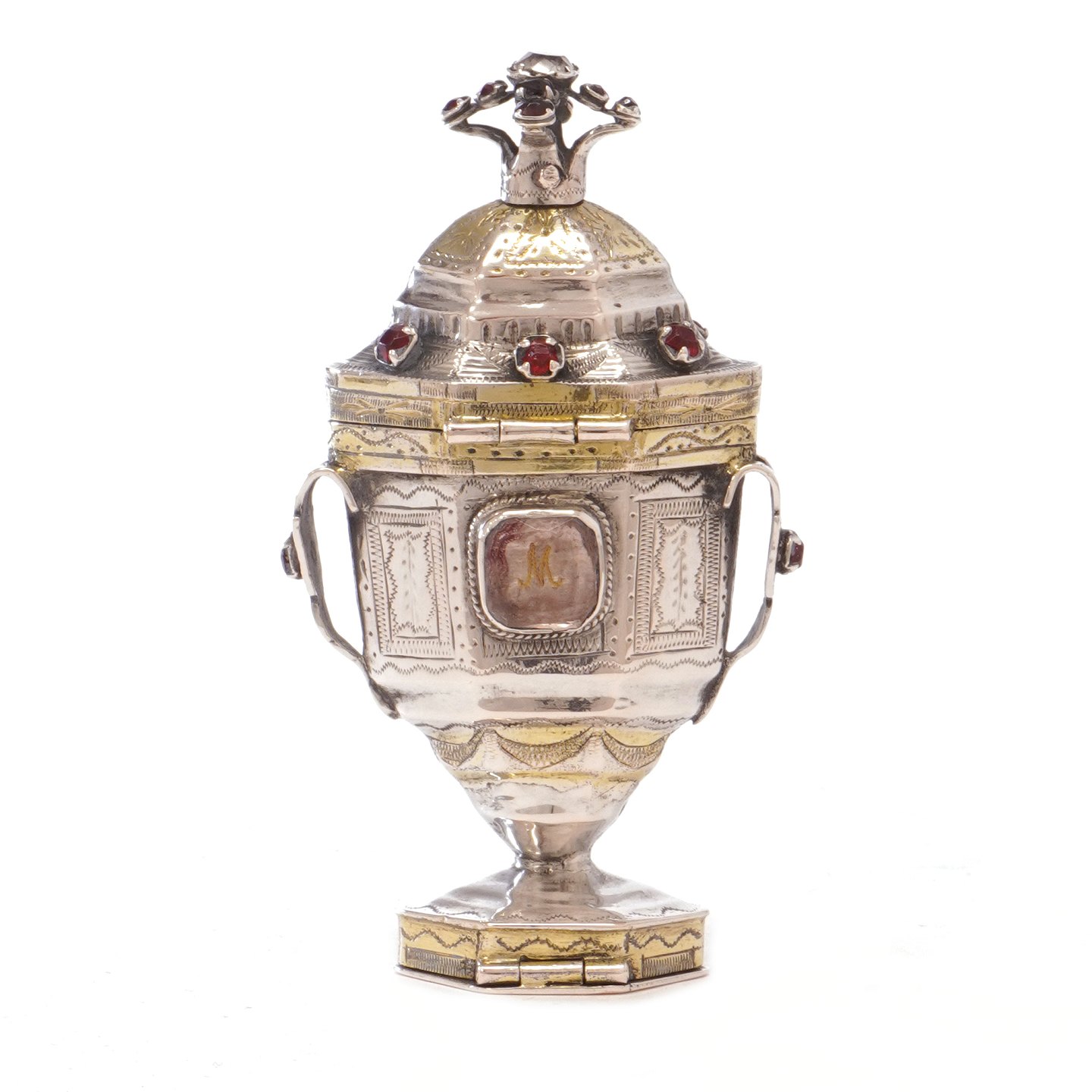Hovedvandsæg i delvist forgyldt sølv udført af Martin Petersen Hommelhoff, Tønder, ca. år 1820